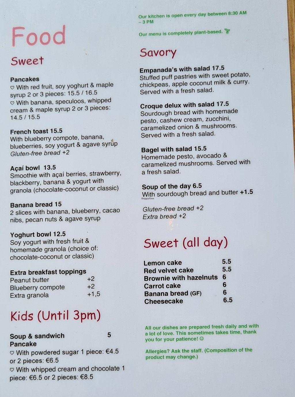 Heel gezellig plekje met lekkere, all vegan gerechten voor ontbijt, lunch en dessert. Zeker een aanrader! De dessertjes zijn super lekker. Klein nadeel: de portie van de ontbijtsalade vond ik een beetje klein. Maar dat liet dus nog ruimte voor een stukje cheesecake😄