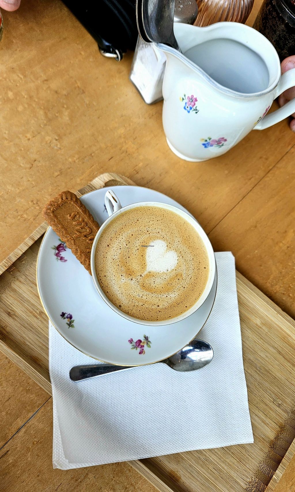 Gezellig, lekkere taarten, soep en toasts, vriendelijke bediening.