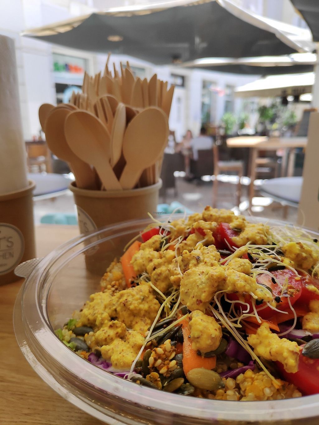 A small place with vegan items such as wraps, sandwiches, salads and bowls. People working here were very helpful. My salad was really tasty!