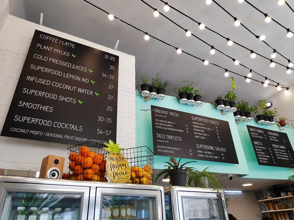 Serves vegan salads, toasts, healthy deserts. Also have raw vegan cakes.