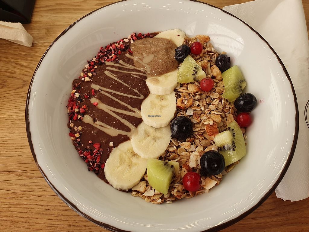Stopped here for a quick lunch and had the chocolate peanut butter smoothie bowl, which was absolutely delicious!! Topped with kiwi, granola, berries and tahini, this was one of the best smoothie bowls I've had! The staff were friendly and spoke English. They had other vegan options such as waffles and chocolate pancakes too!