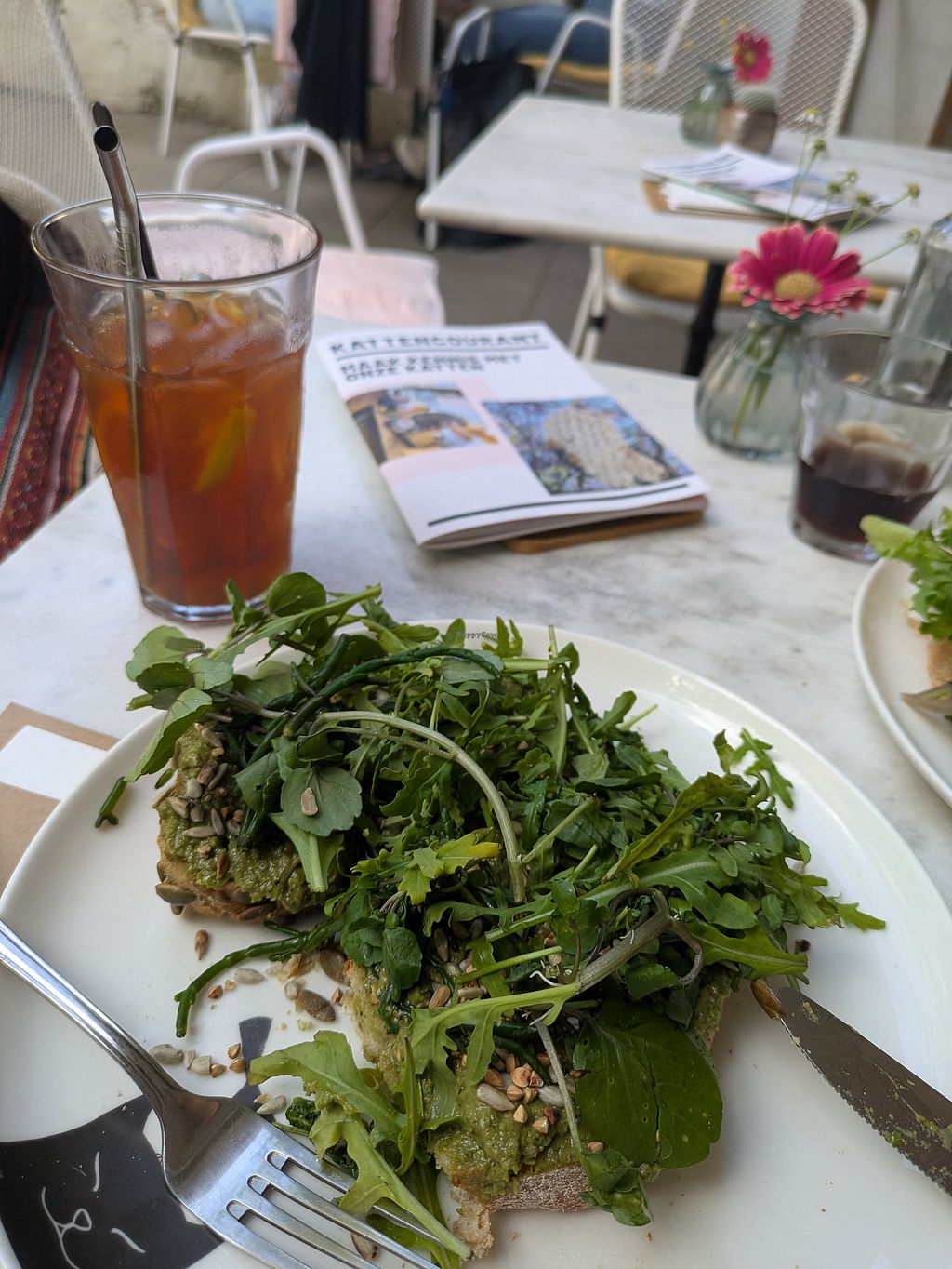 Read moreI worked from the terrace for a while and it was very relaxed. The cats come and say hi every now and then. The food was tasty, I had the avocado toast with salsify. Nice to see this tasty and original addition of sea vegetable to a classic lunch dish.