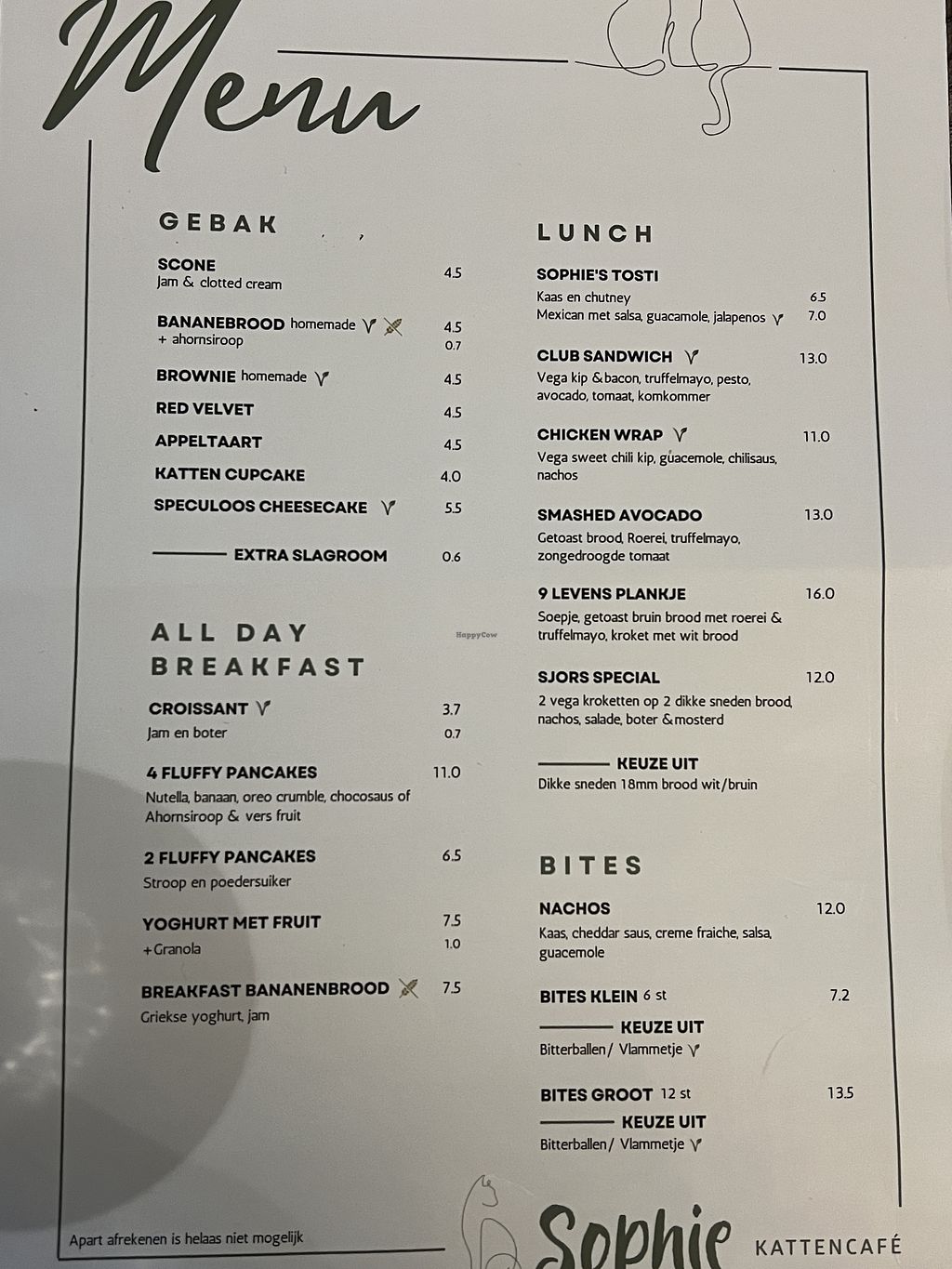 The cats are super cute, the staff are friendly, the location is right in the centre of Leiden, and the food is SO GOOD!! I had a vegan club sandwich and it was really really really good. Please go visit and try the food if you're in and around Leiden!
