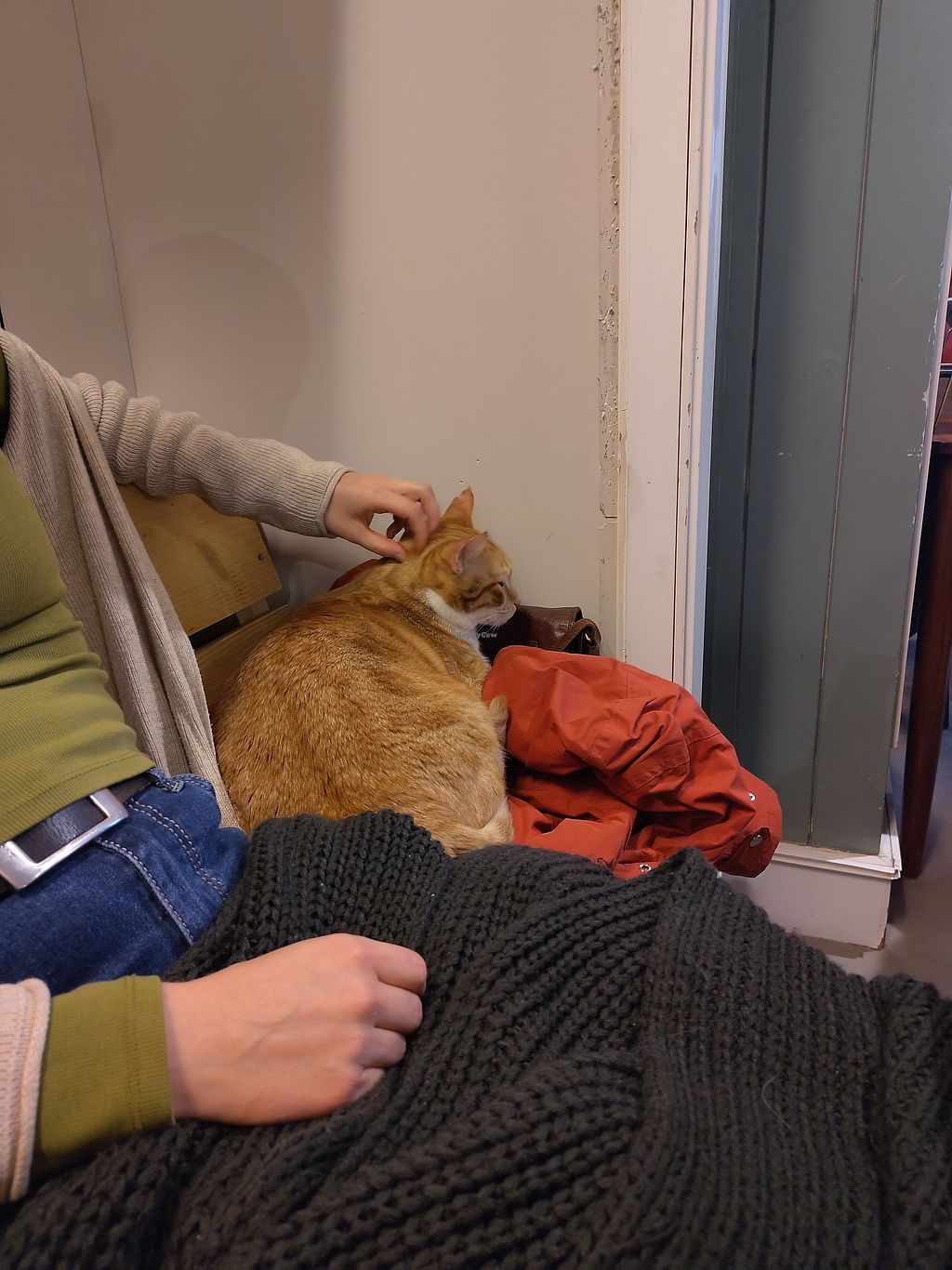 Had a nice time getting cuddles and purrs while enjoying chai latte and a tasty croissant 🥐