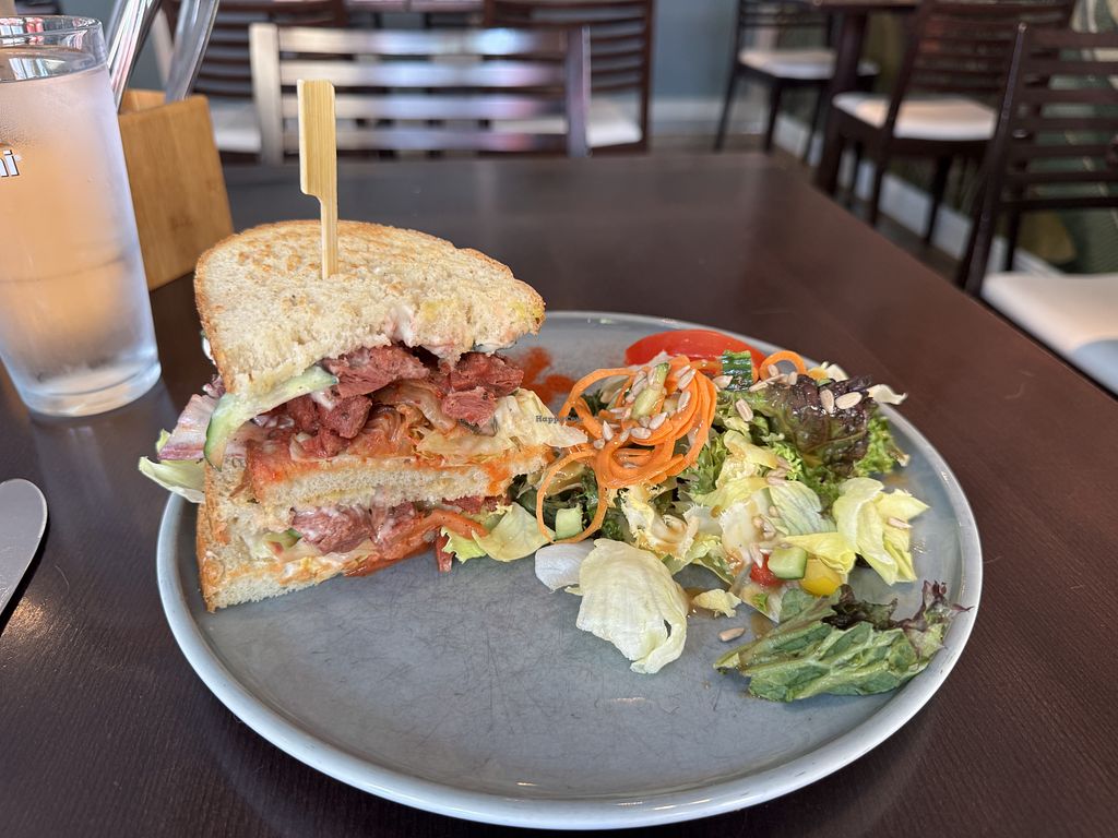 Das Essen war sehr lecker und es gab eine große Auswahl an veganen Burgern, Sandwiches und Bowls. Außerdem gab es viele Frühstücksgerichte.