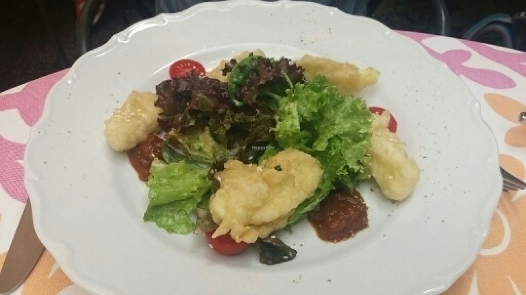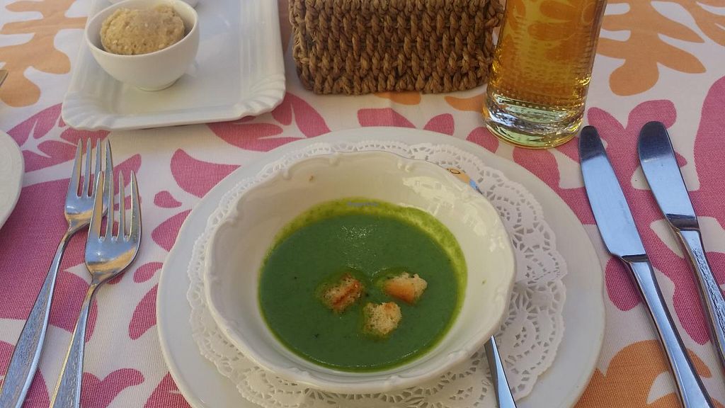 Read moreWe had mushroom risotto which was delicious and ravioli with some wild garlic and that was excellent as well. They gave us an appetizer consisting in a small lentil spread, delicious bread, olives and a small lentil coconut soup. They also have vegan desserts. It is not a vegetarian or vegan place but they accommodate very well. Staff was nice.