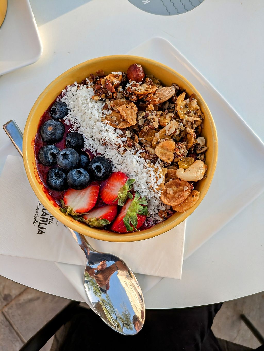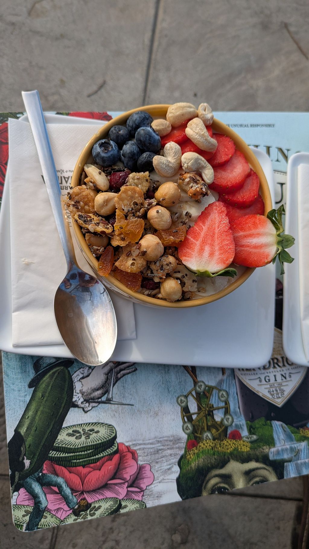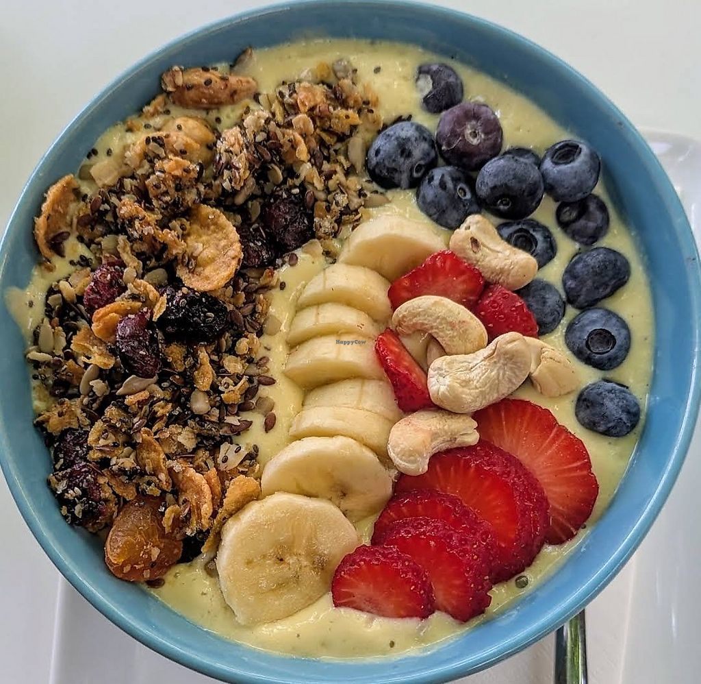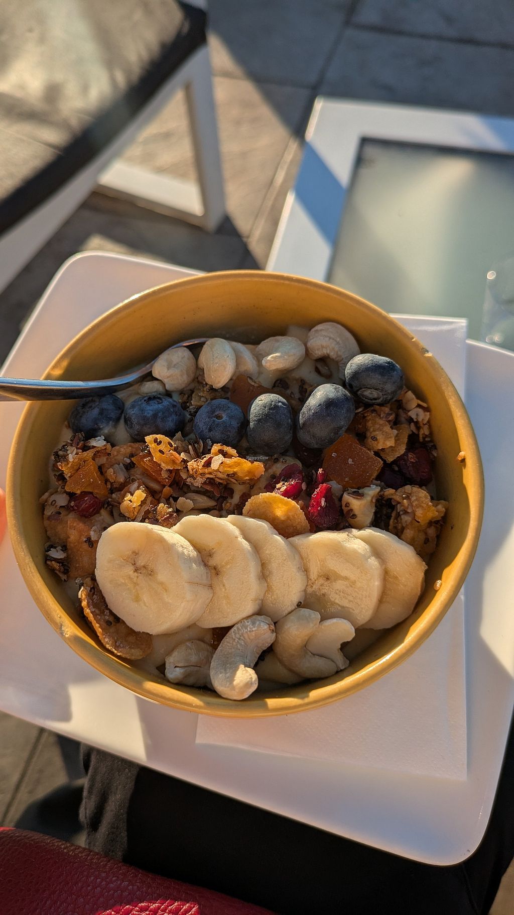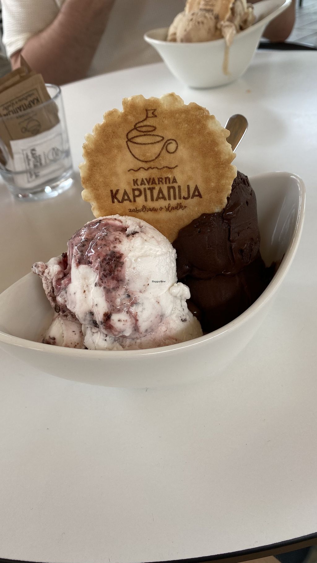 Vegan charcoal croissant and coffee with soy or rice mylk.