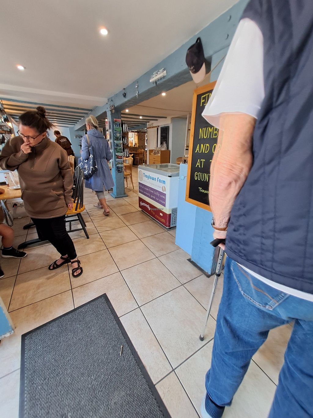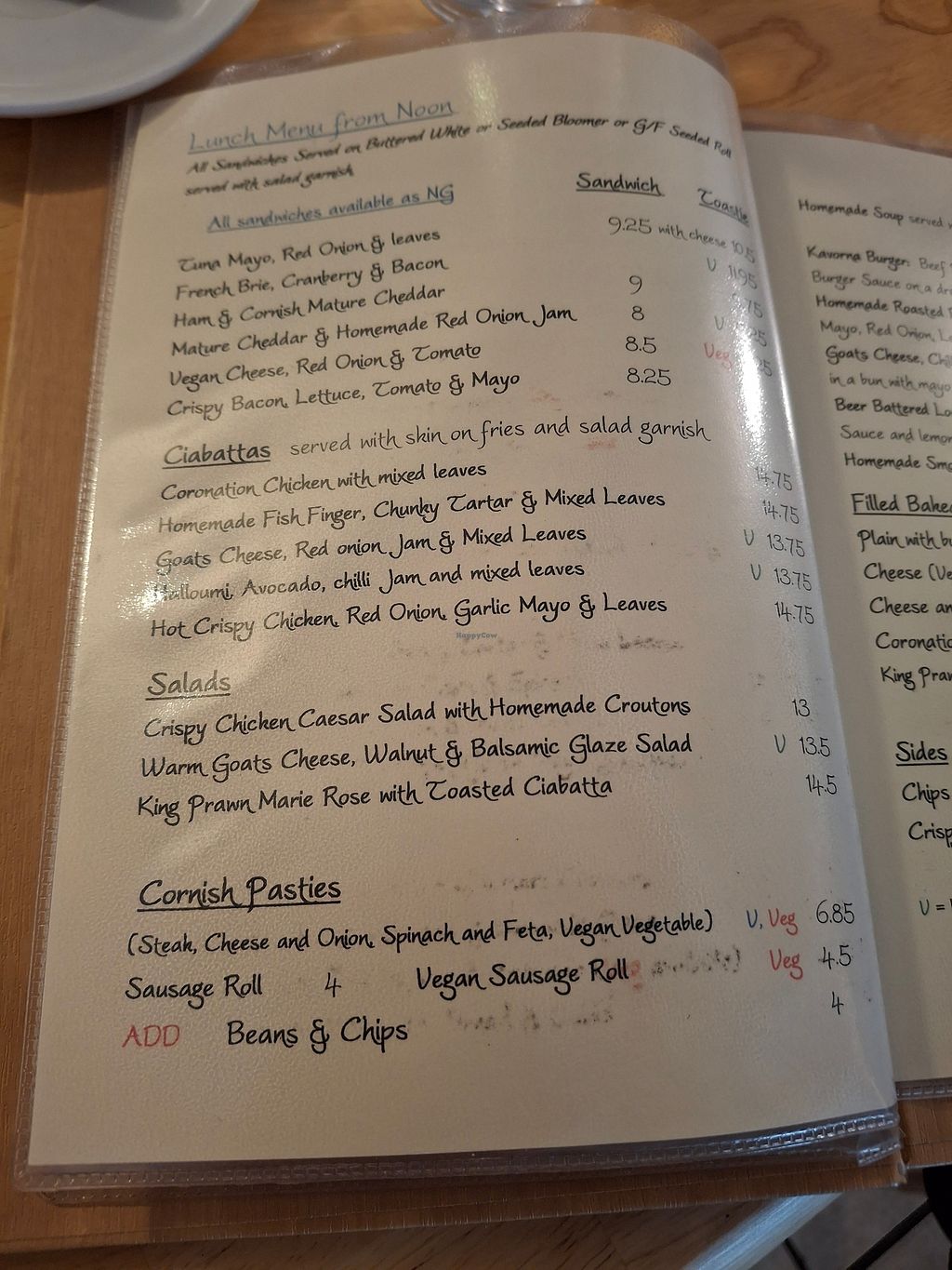 Very cute but busy cafe (probably because everyone was straight off the very) food fairly priced compared to the rest of the island, we had the vegan pasty, vegan sausage roll and vegan sausage bap, all very tasty.