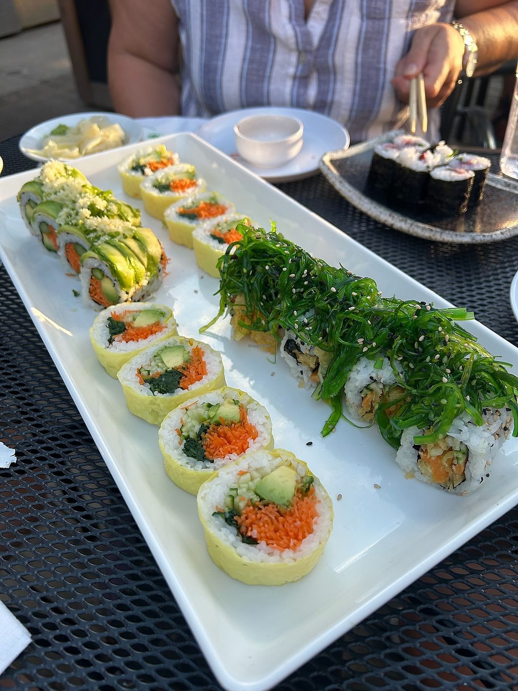 Got some yam tempura and avocado cucumber rolls. They were really good. Also tried their tofu salad as vegan option, which I never heard of before. It looks quite strange but it’s a huge plate. It was alright.