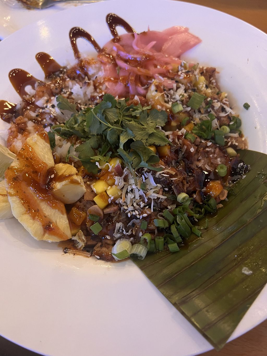 Kaya has an amazing happy hour, delicious food, and relaxing tropical vibe with both indoor and outdoor seating options.🌴 As other reviewers mentioned, the owner Scott is on site most of the time. He is very generous to the community nonprofits letting them use the space for fundraisers and also does his own including helping the Hawaii Community Foundation's Maui Strong Fund. There are many vegetarian options and a few vegan items, and the staff is very willing to customize menu offerings (such as substitute tofu for chicken).