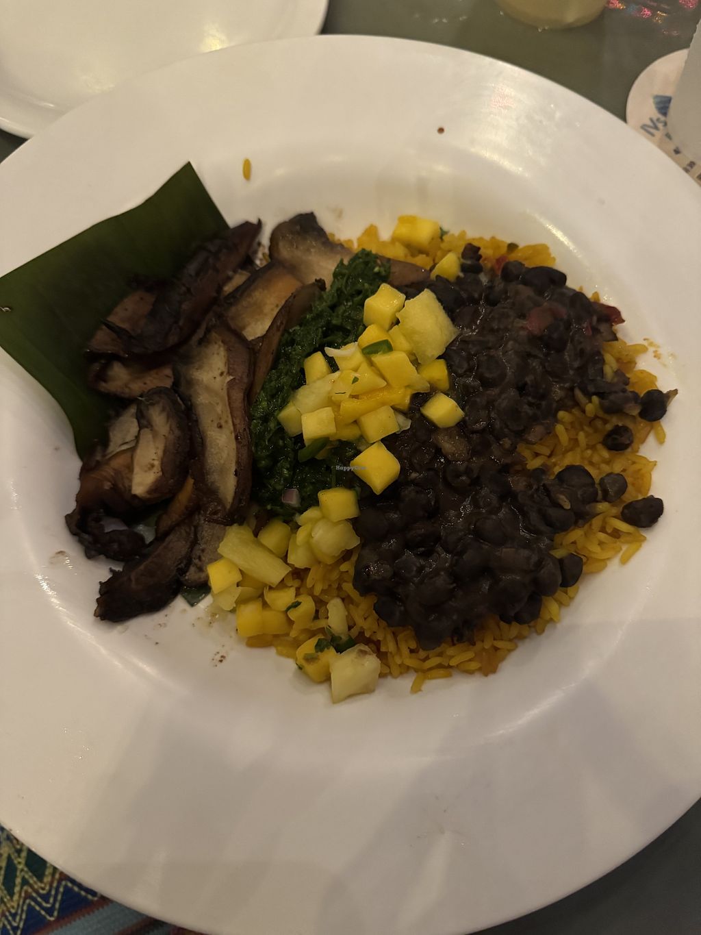 They have three vegetarian/vegan options on their menu (plus salads). I had the portobello jerked with saffron rice with black beans and mango/pineapple salsa. It was amazingly good. #Veganuary