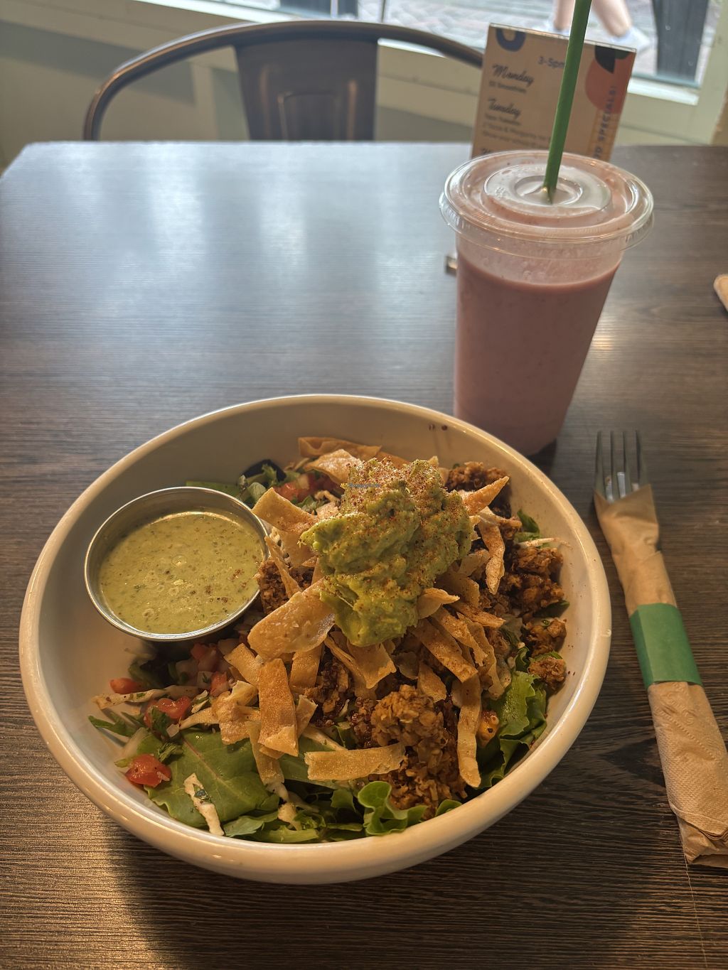 Read moreUpdate: Went here again! Husband got the tofu quesadilla and I got the southwest vegan salad. We also somehow had room for a vegan blondie and Georgia Peach Sunrise smoothie for dessert. Sooo good!