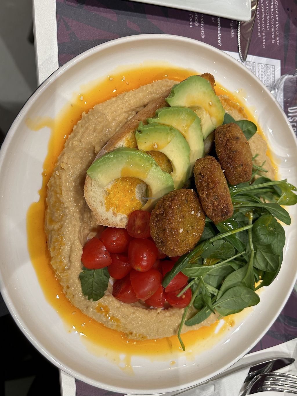Locale piccolo ma carino, fanno brunch a tema e in questo momento è tutto decorato a tema harry potter. Nel menu hanno un piatto unico hummus- falafel- crostone con avocado- pomodorini e valeriana molto buono ( hummus soprattutto di ottima qualità). Possibilità anche di scegliere vari contorni di patate o avocado o i pancake con impasto veg! Consigliato per un brunch in centro Modena con gli amici