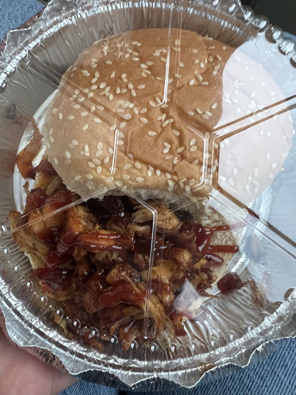 Jackfruit bbq sandwich (bbq sauce is a sweet and spicy flavor)
