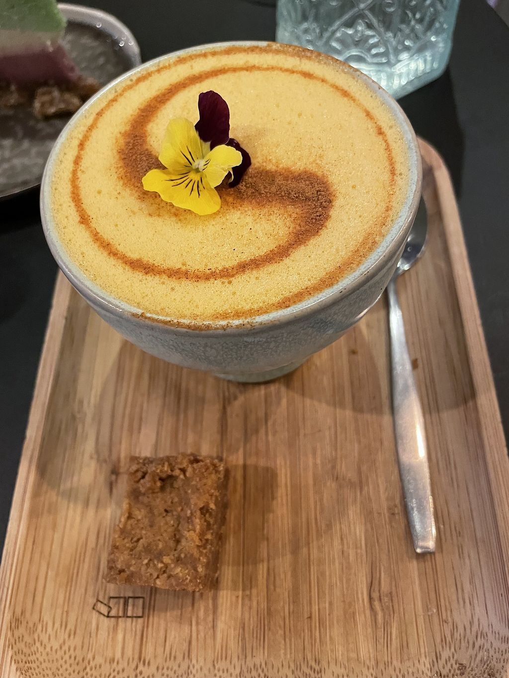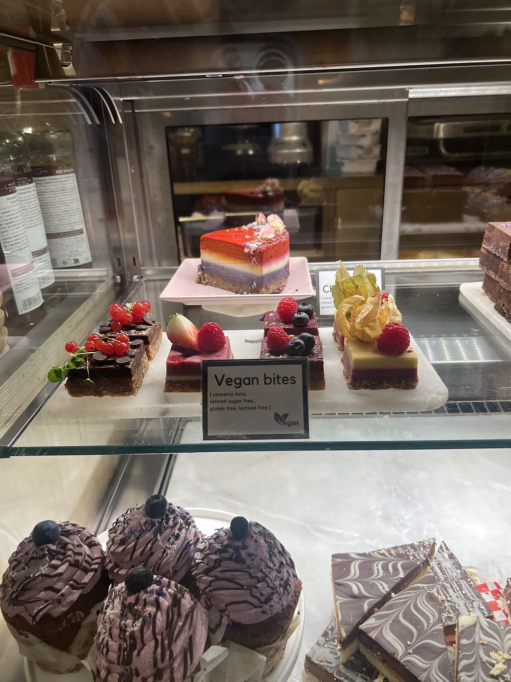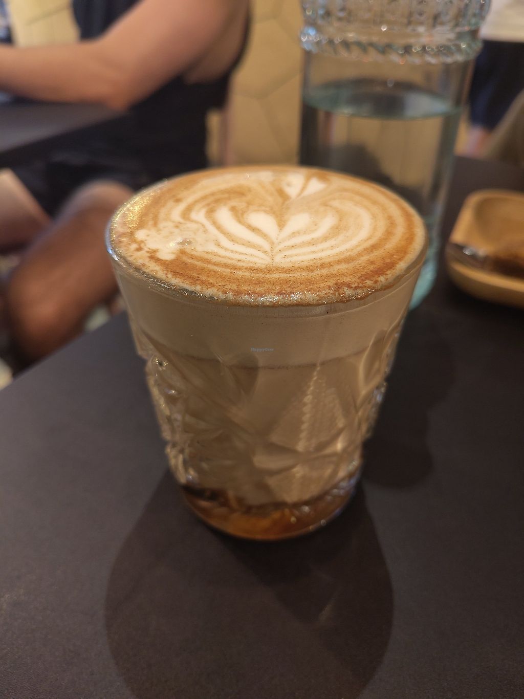 Almond Chai Latte (left, vegan), Caramel Latte (right, not vegan)