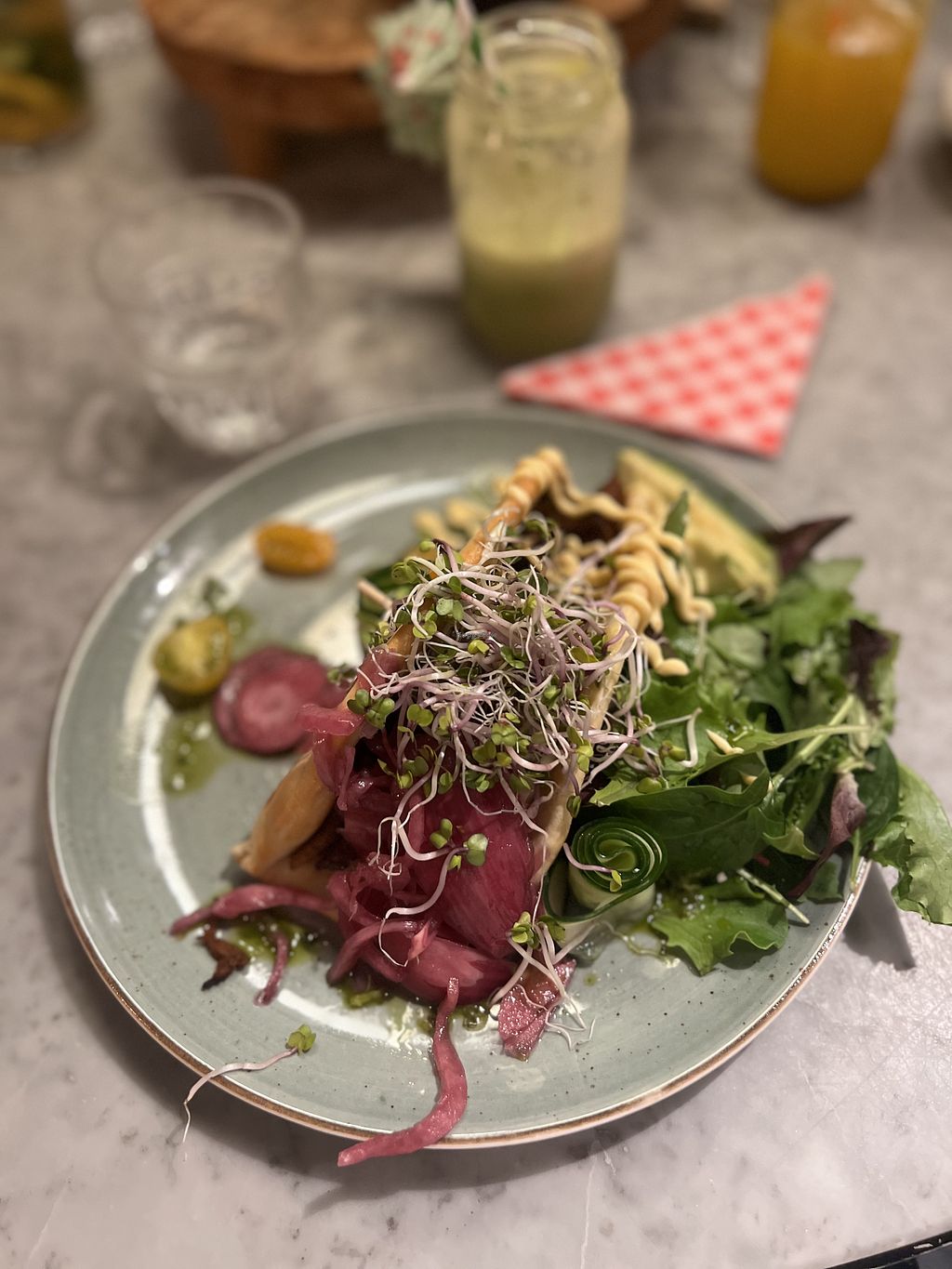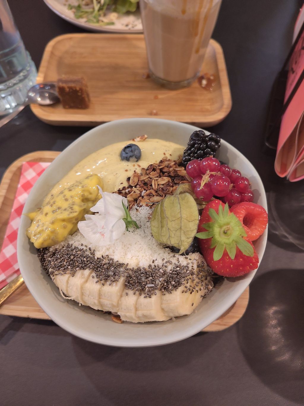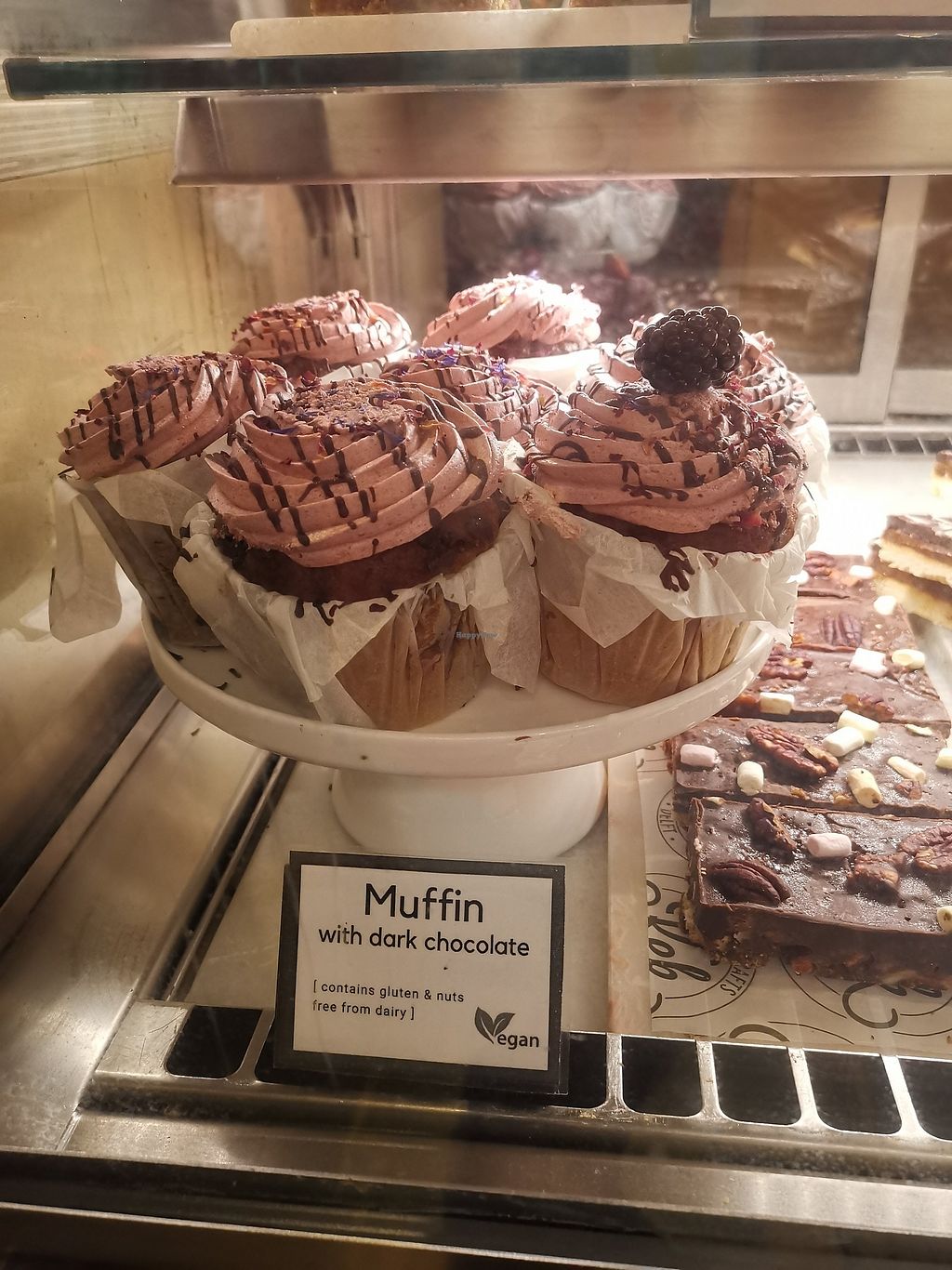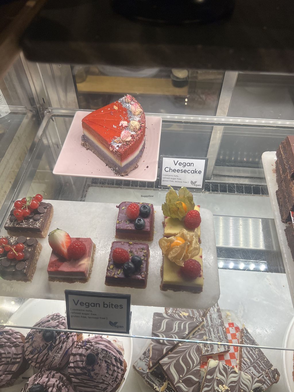 Almond Chai Latte (left, vegan), Caramel Latte (right, not vegan)