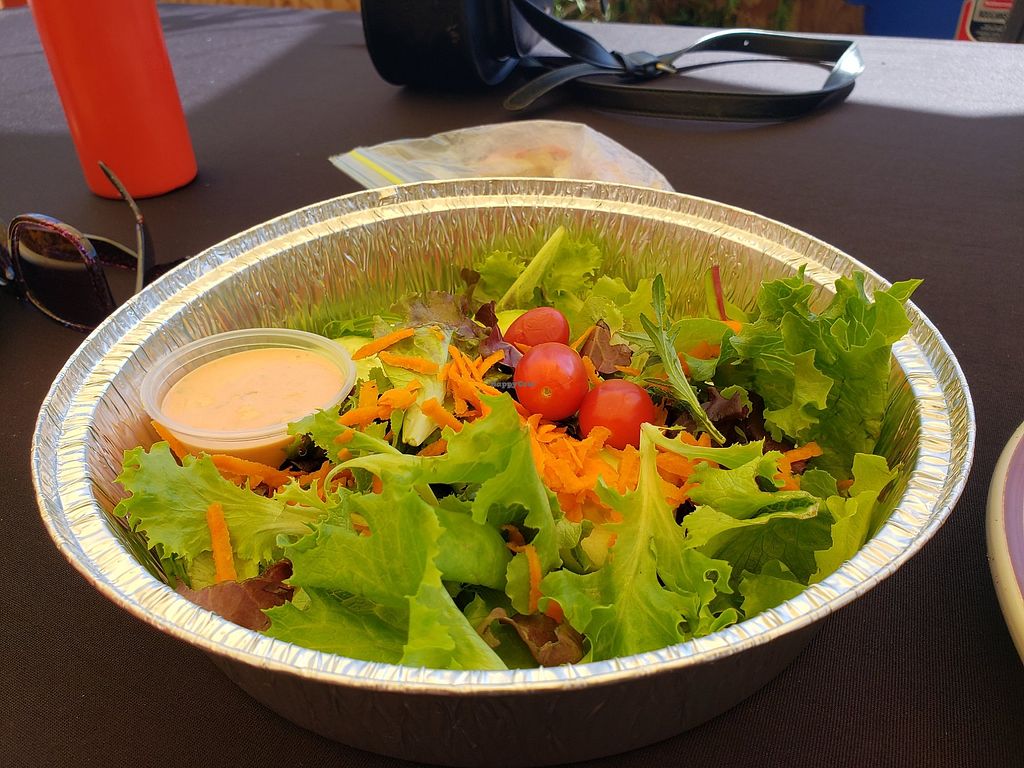 Side salad with vegan thousand island drssing in lieu of fries with th…