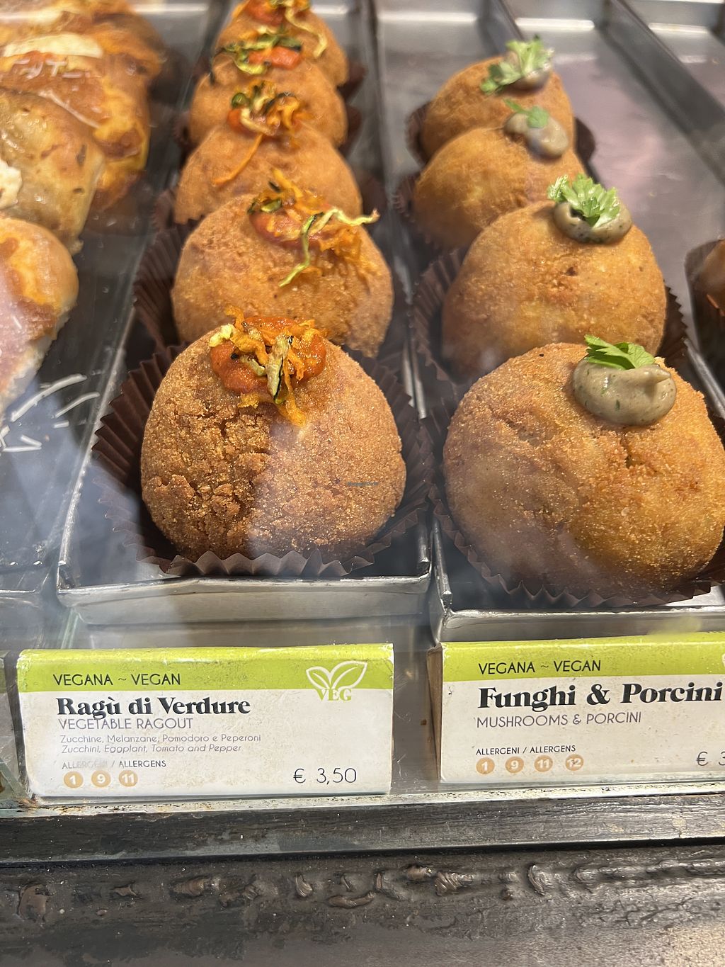 They have at least two vegan arancini options - I had one with a ragù filling. Delicious. The other one was sold out, I think it had a mushroom filling. I'll have to come back and check it out if they have it again. Plenty of other vegan options, and vegetarian options as well.