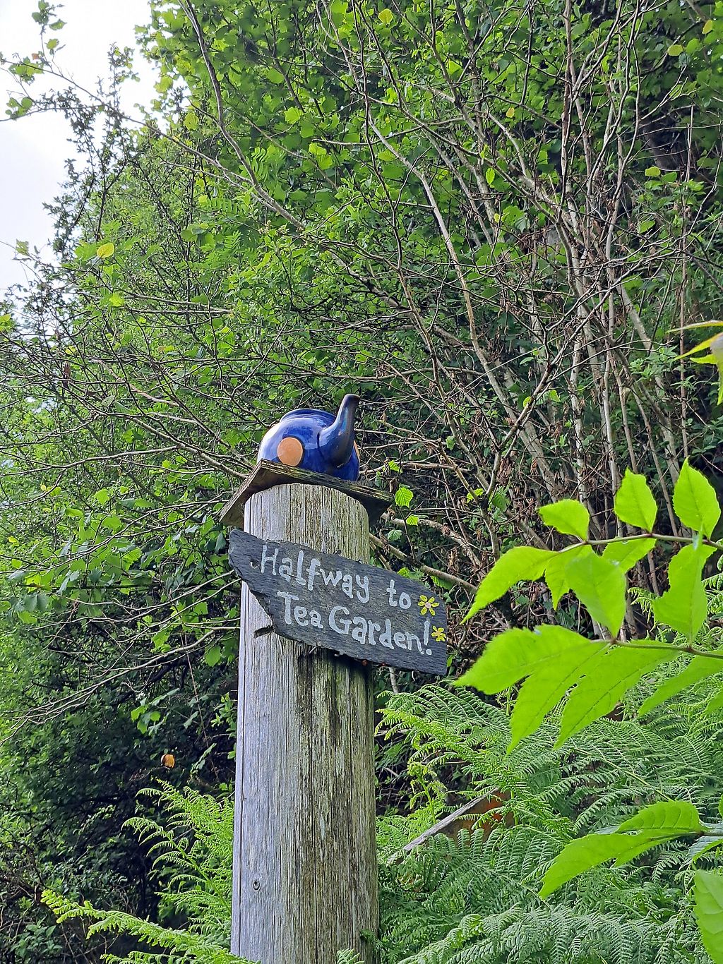We enjoyed the encouraging waymarks on the walk from the ferry. Nice garden, nice staff and some vegan options available.