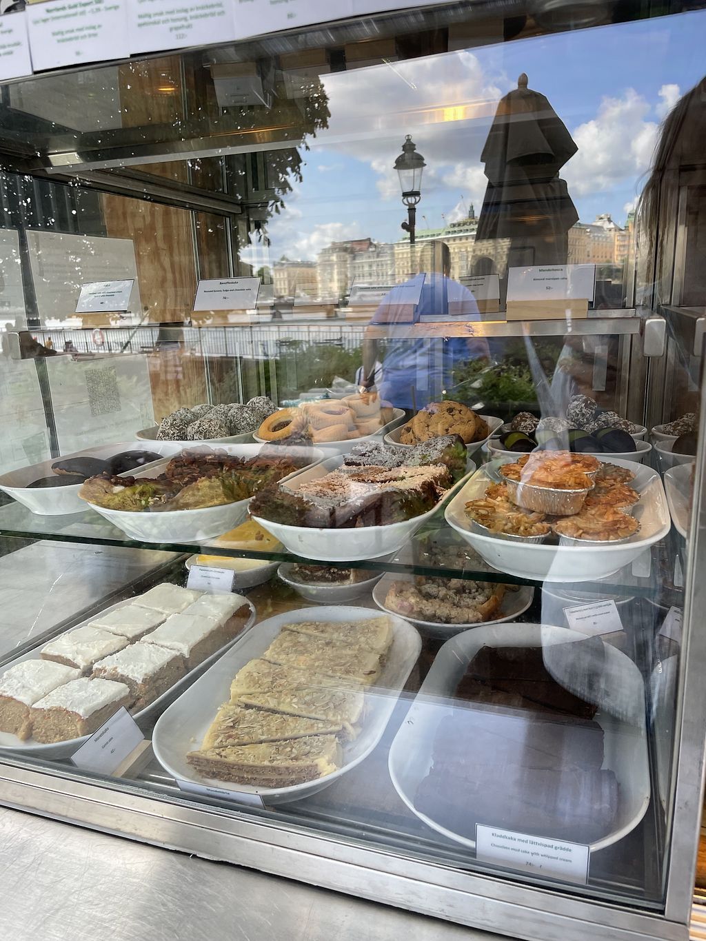 Lovely place with very friendly service. Amazing view, good music and Some vegan options; 2 pastries, a sandwich, some snacks and plant based milk for coffee