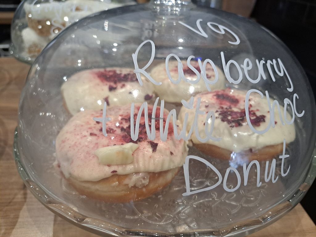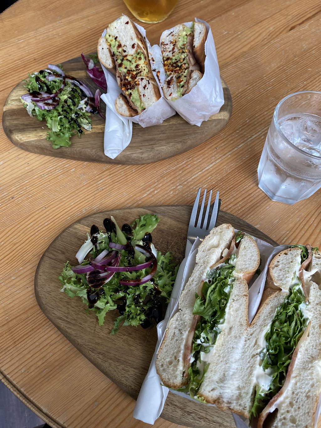 Cream cheese, bacon, rocket and onion chutney (all vegan) delicious!!
