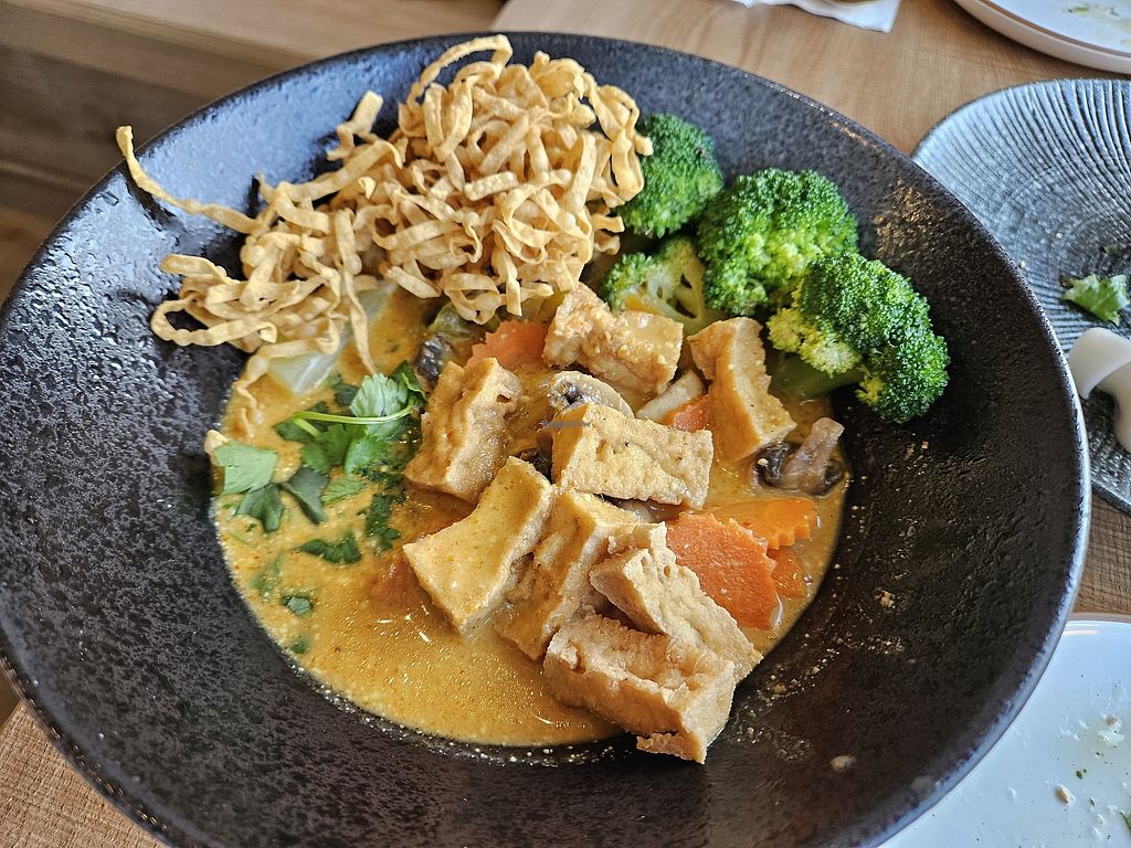 Serves meat, vegan options available. Thai restaurant with dishes that can be made vegan upon request. Tofu protein available. Offers noodles, vegetable stir-fry, summer rolls, samosa and more. Specify no egg or fish/oyster sauce when ordering. Open Mon-Sun 11:00am-3:00pm, 5:00pm-9:00pm.