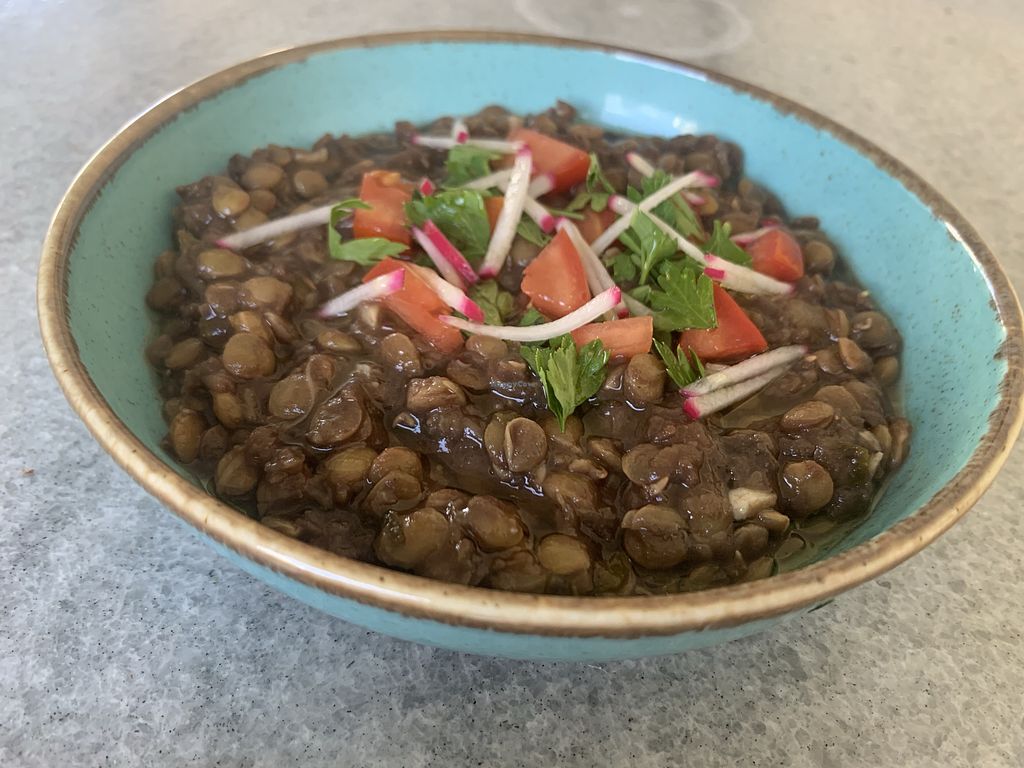 I love the Hummos with the vegan meat and the majadra!