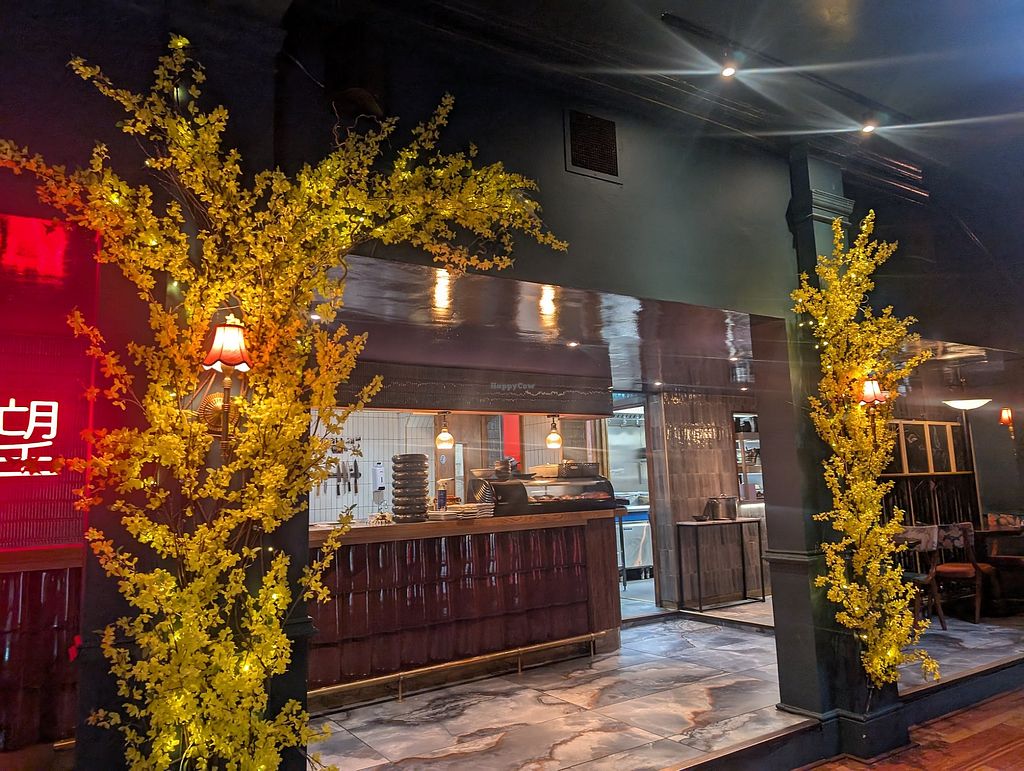 Serves meat, vegan options available. Japanese restaurant and bar with a vegan menu. Vegan selection includes charred eggplant with caramelized sweet miso glaze, pumpkin croquettes, grilled tenderstem, blistered peppers with yuzu truffle vinaigrette & shiso, sushi rolls with kimchi, avocado, cucumbers or roasted red peppers, avocado nigiri sushi and more. Open Mon-Sat 12:00-23:00, Sun 12:00-22:00.