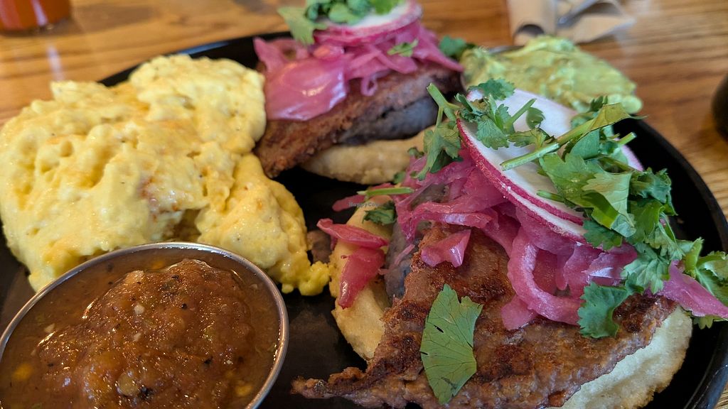 They do not have a vegan sub for the chipotle aioli and cheese so to veganize items, those are removed. However, the dishes do not feel incomplete without them when there is salsa and house hot sauce. My favorite part is they have Just egg and beyond patties and they come in generous portions. I have tried the wet burrito, tacos, and burrito bowl. They open at 8am. If you can finish the entire meal, it will last you all day. I was able to hike 9 mi 2700ft with no snacks after that and did not get hungry until 5. On top of that, their latte drinks were amazing.