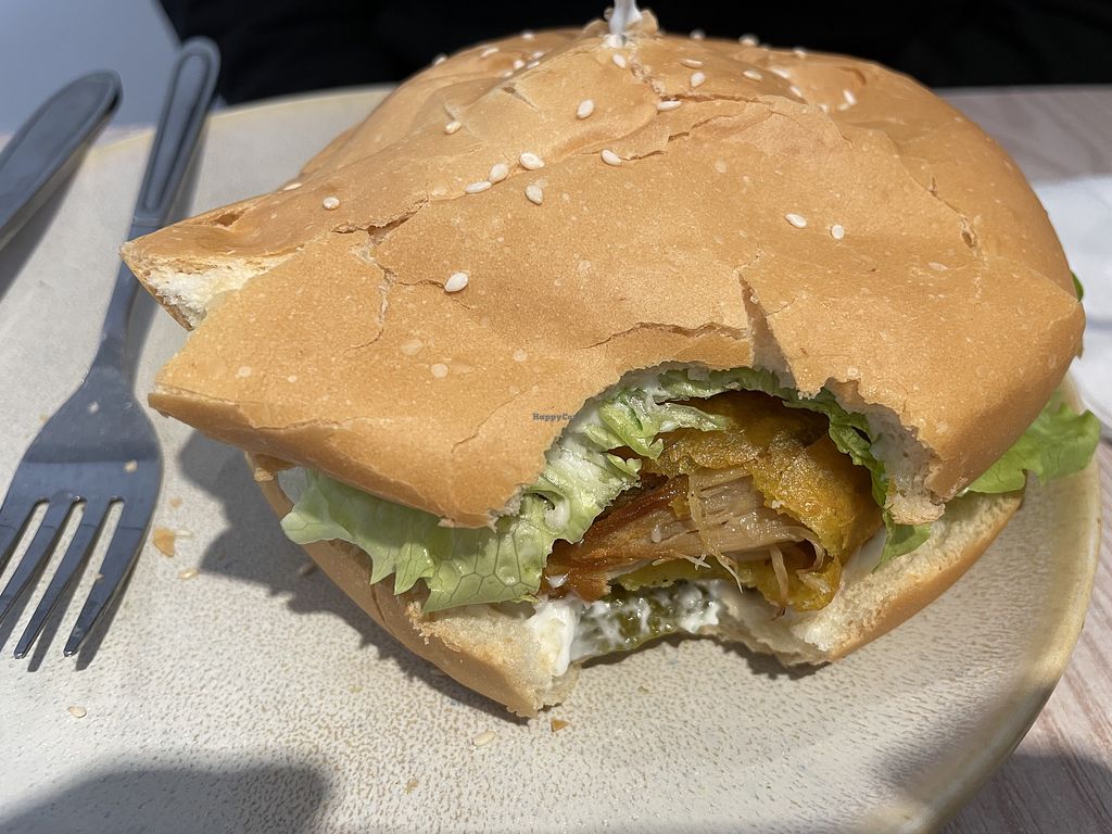 Doner meat replacement and tzatziki were top notch. Vegan fried egg that came with the banh mi was also fantastic. Vietnamese coffee had very thick condensed plant milk and tasted so good. On my second visit, I had to try the pho as it is a vegan butcher, and it did not disappoint. I have very low tolerance to spicy food and separate sauce for the pho was quite spicy. I would advise people with low spiciness tolerance to go easy with the sauce. The fake chicken in the chicken burger is outstanding and better than most vegan chicken burger patties I get in Europe. Portions are pretty good too.