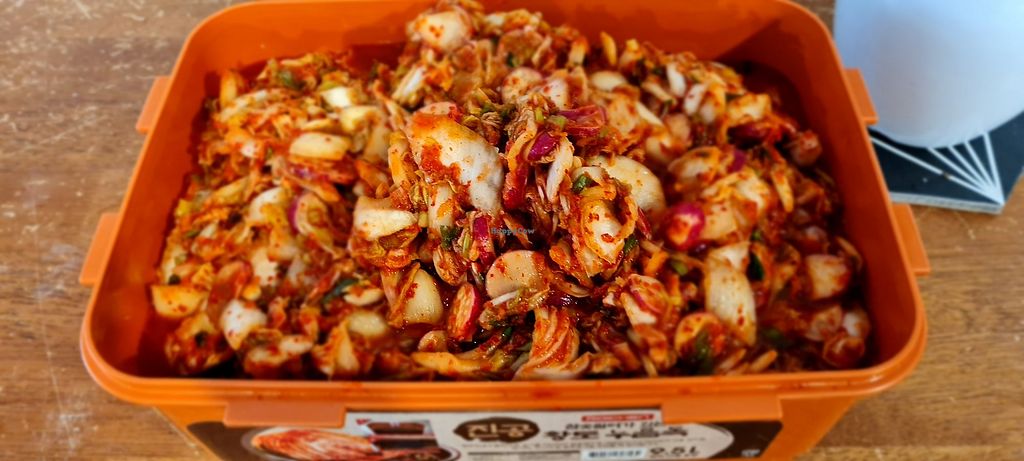 Vegan kimchi.. generous amount for price. A Korean kimchi and pop up queen. Completely vegan