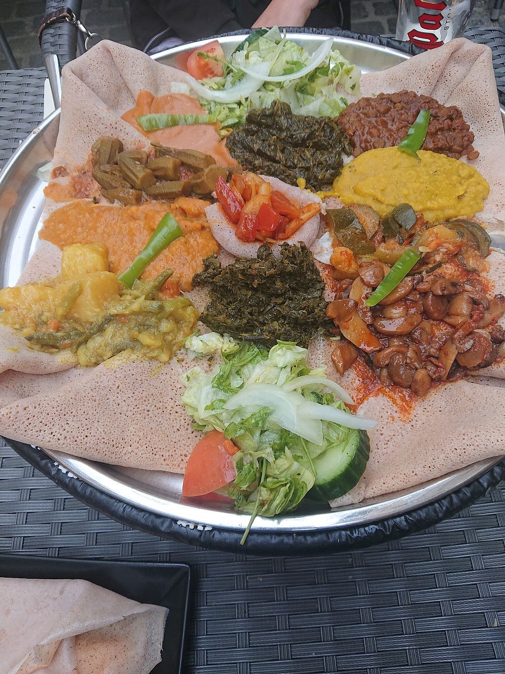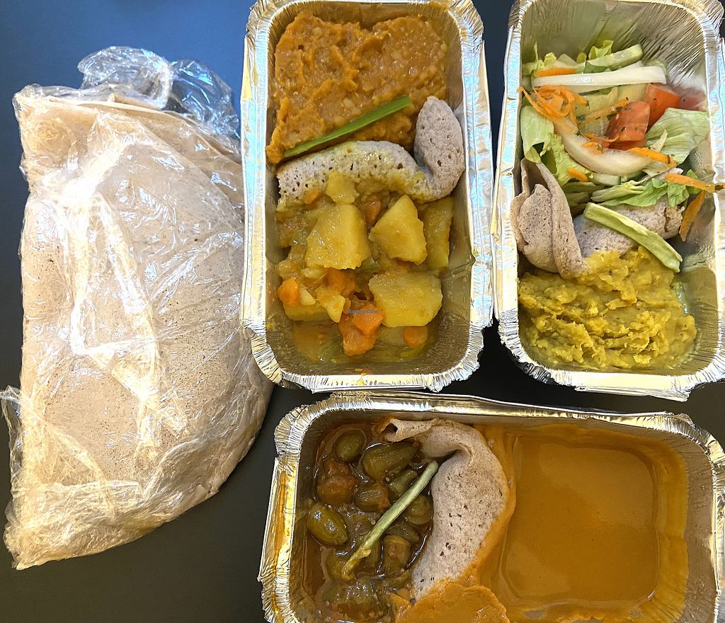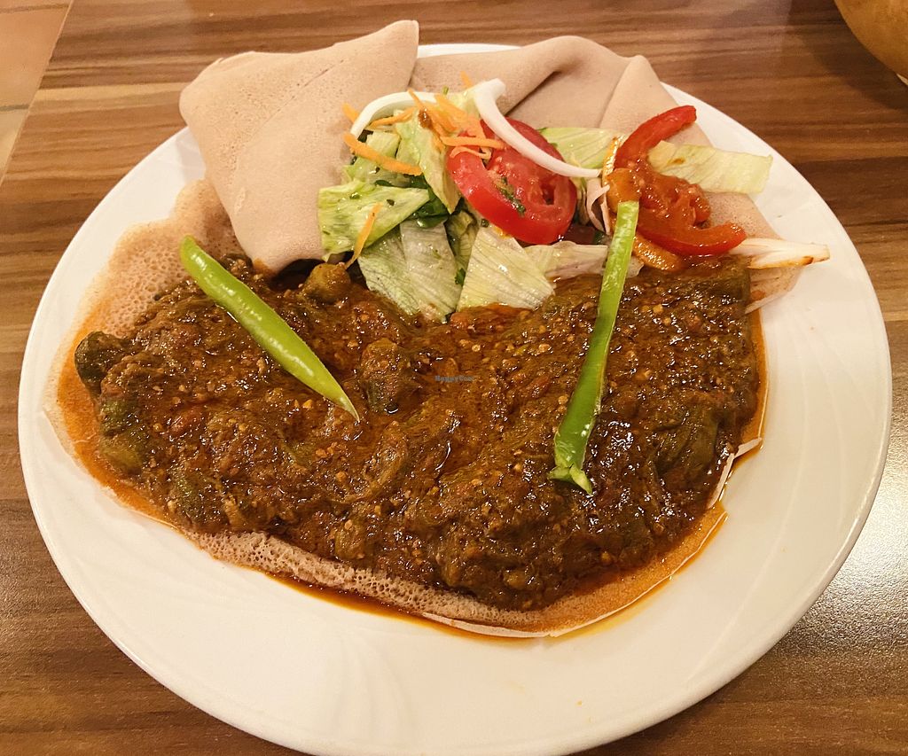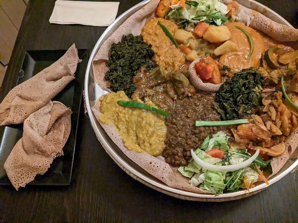 I was there with friends and shared a vegan plate. For any unfamiliar with Eritrean/Ethiopian food, this comes as various food (lentil curries, veg etc) on top of a big piece of bread that you rip pieces off and use to pick up the food. The food was excellent as was the service.