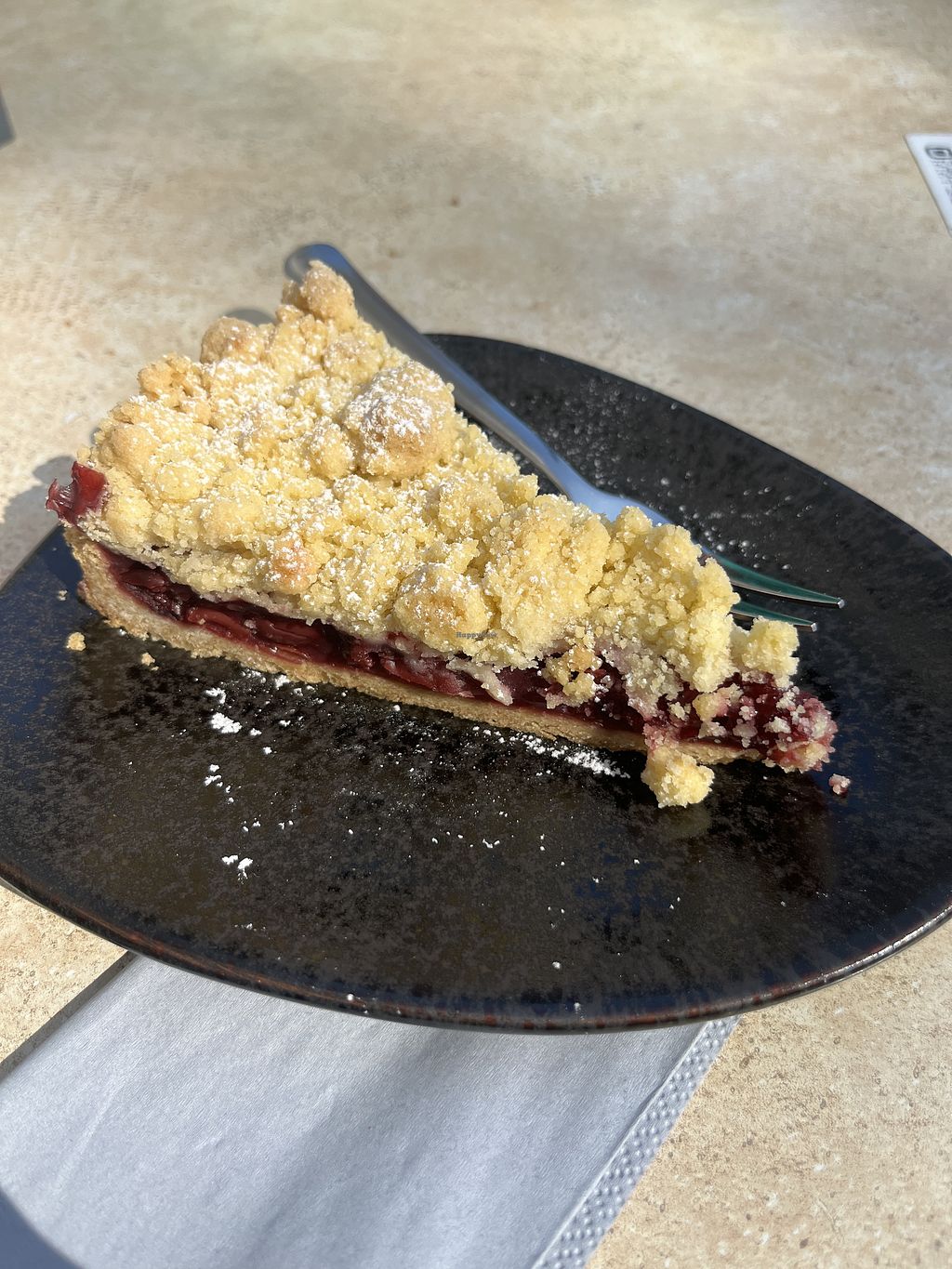Vegan cherry crumble cake