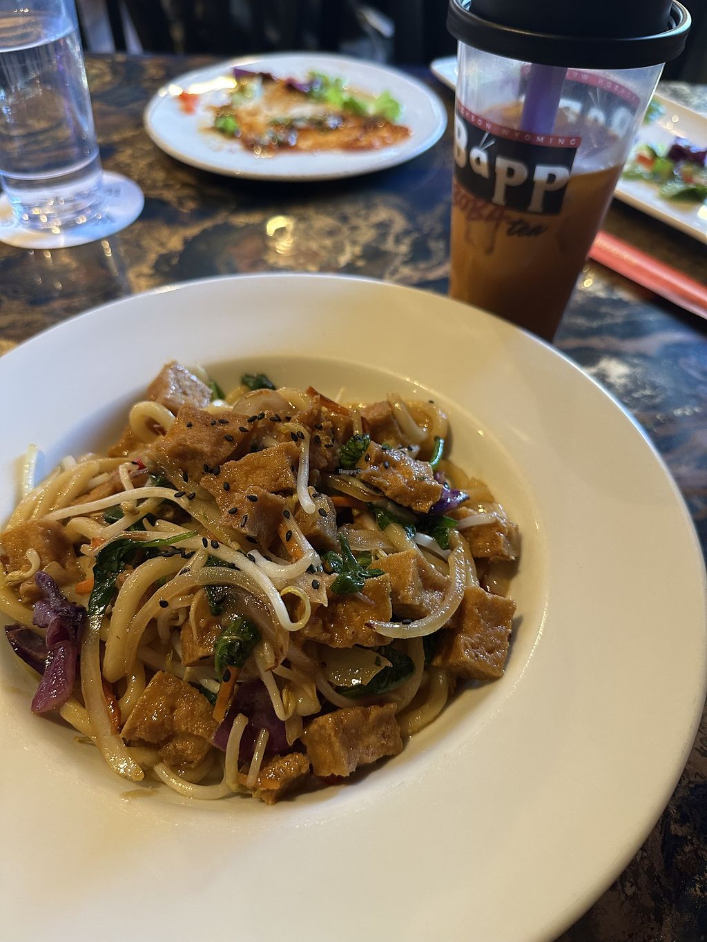 We really enjoyed our meal here. Our server was friendly and knowledgeable. We ordered the crispy tofu app, the veggie potstickers, Thai tea boba with soy milk, and noodle stir fry with tofu. All were very good. We would eat here again!