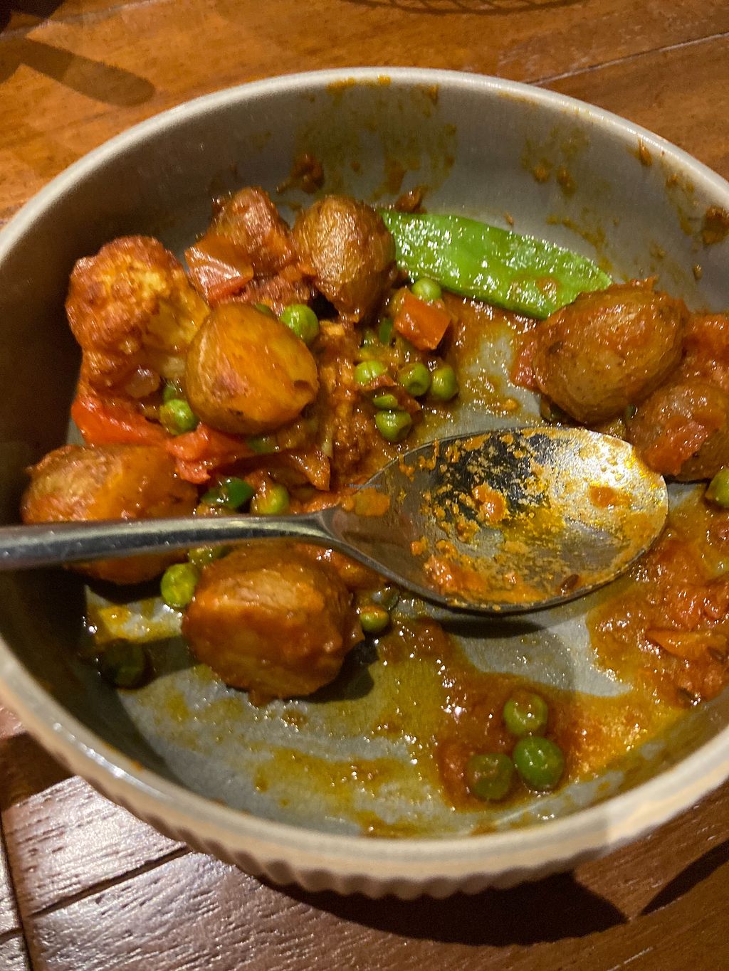 Serves meat, vegan options available. Indian restaurant offering a few items that can be made vegan such as achari broccolini, sigdi mushroom, aloo gobhi mattar, navaratna (roasted baby vegetables), mushroom pepper roast, dal sultani, green pea mattar, green salad and soya sago. Open Mon-Tue 6:00pm-11:00pm, Thu-Sun 6:00pm-11:00pm.