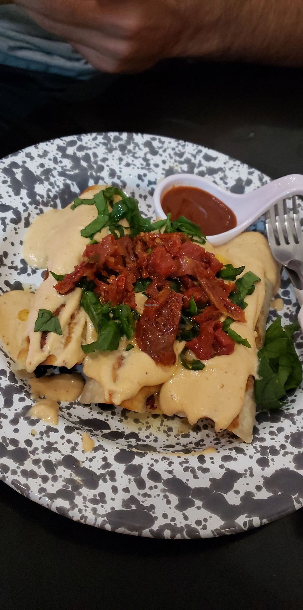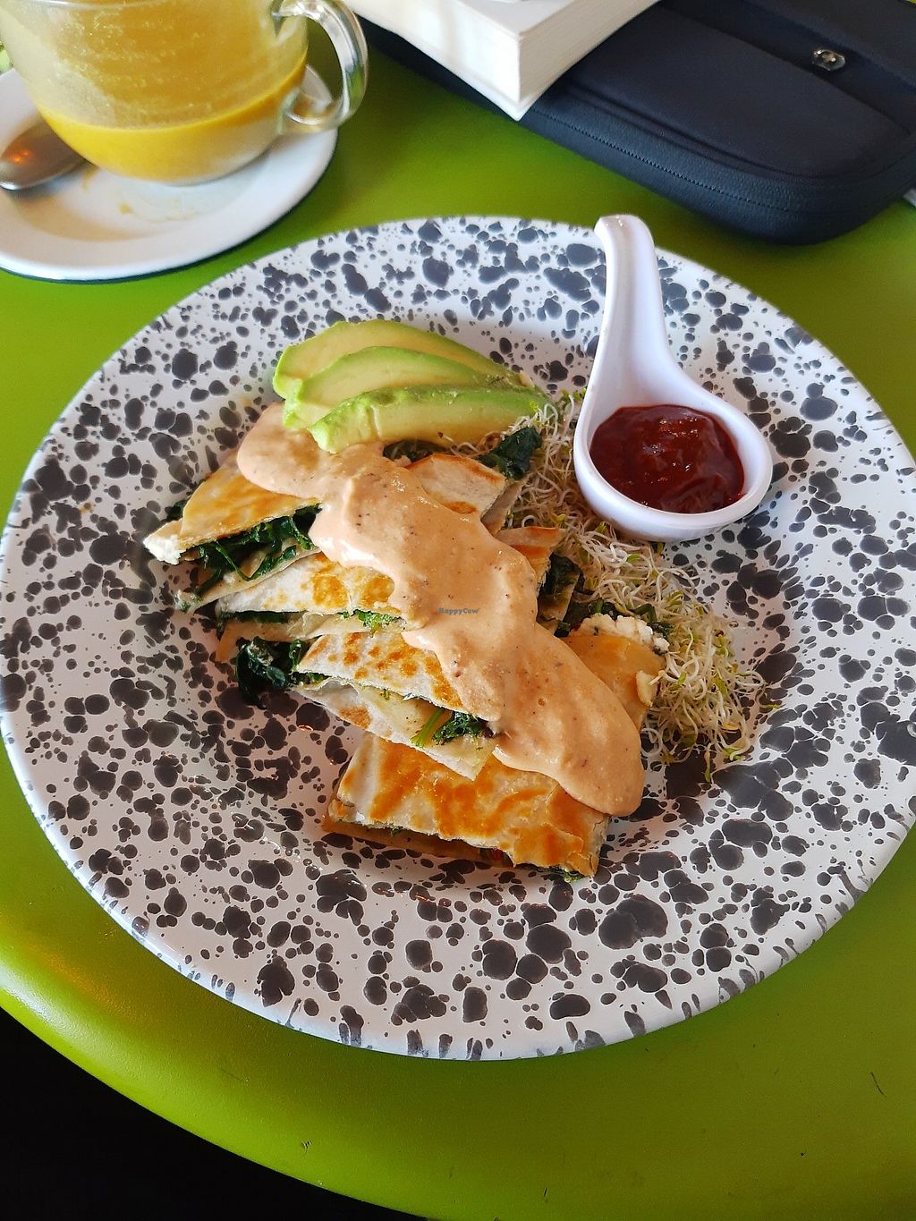 Spinach tacos with almond cheese!