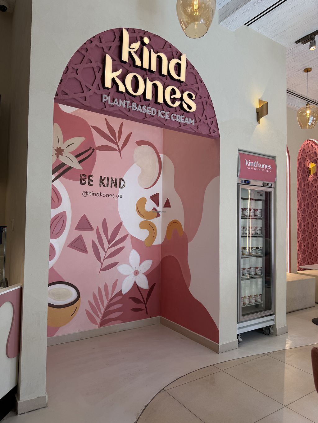 Kind Kones’ oat milk pistachio coffee is absolutely stunning! It might sound sweet, but it’s not (thankfully). The vegan milky ice creams are gorgeous, especially “The OG,” which is almond brittle fudge. My second favorite was the salted chocolate caramel. And of course, I loved the “no sugar added” dark chocolate ice cream. KK also offered a few other vegan treat surprises, such as vegan Reese’s cups, protein bars, brownies, and more. The cherry on top was Vanessa, the kindest and most beautiful soul I met in all of Dubai. I couldn’t have asked for more from Kind Kones and their amazing staff.