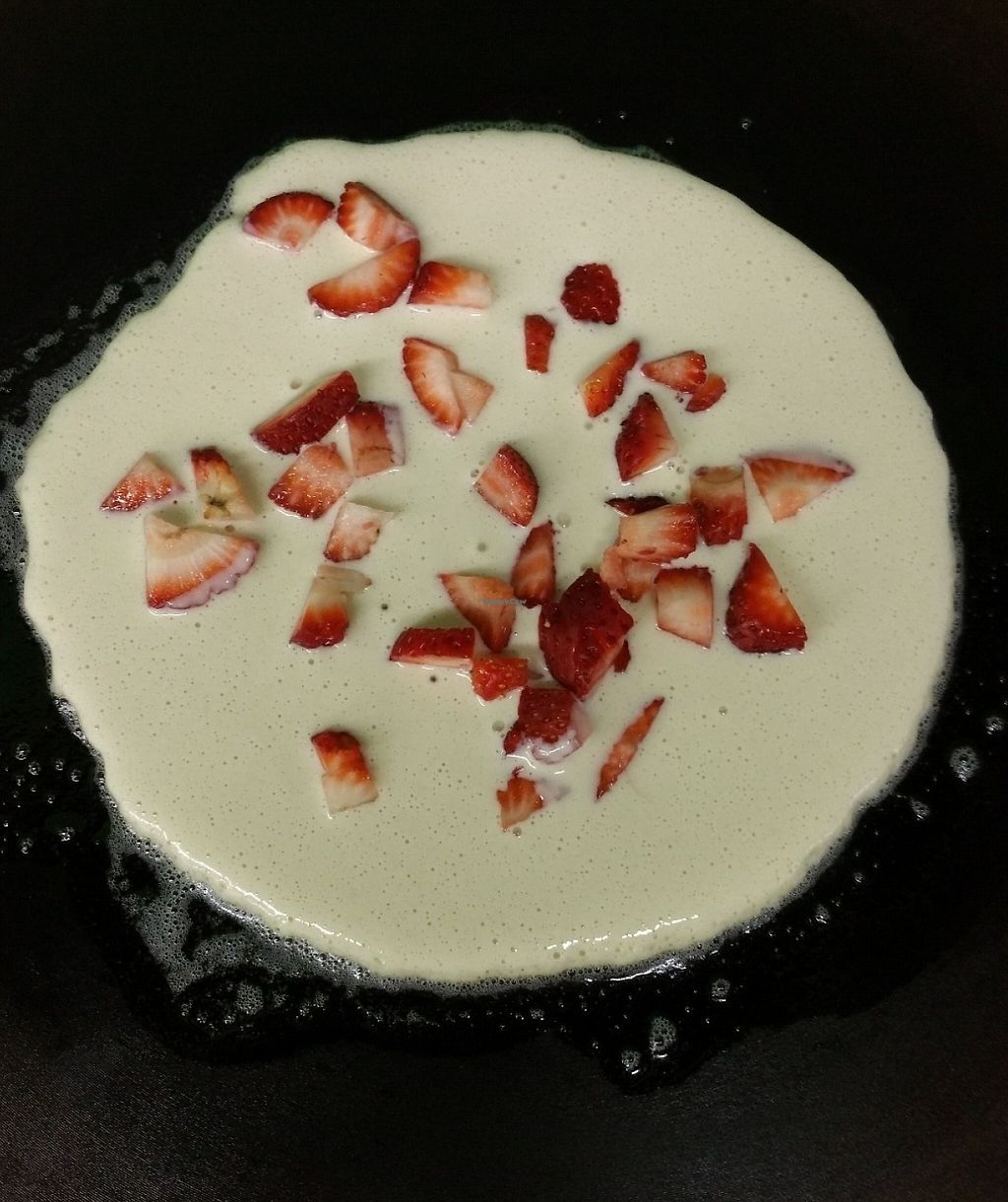 Pancakes made with soy. Choose from many fruit options. Maple syrup av…
