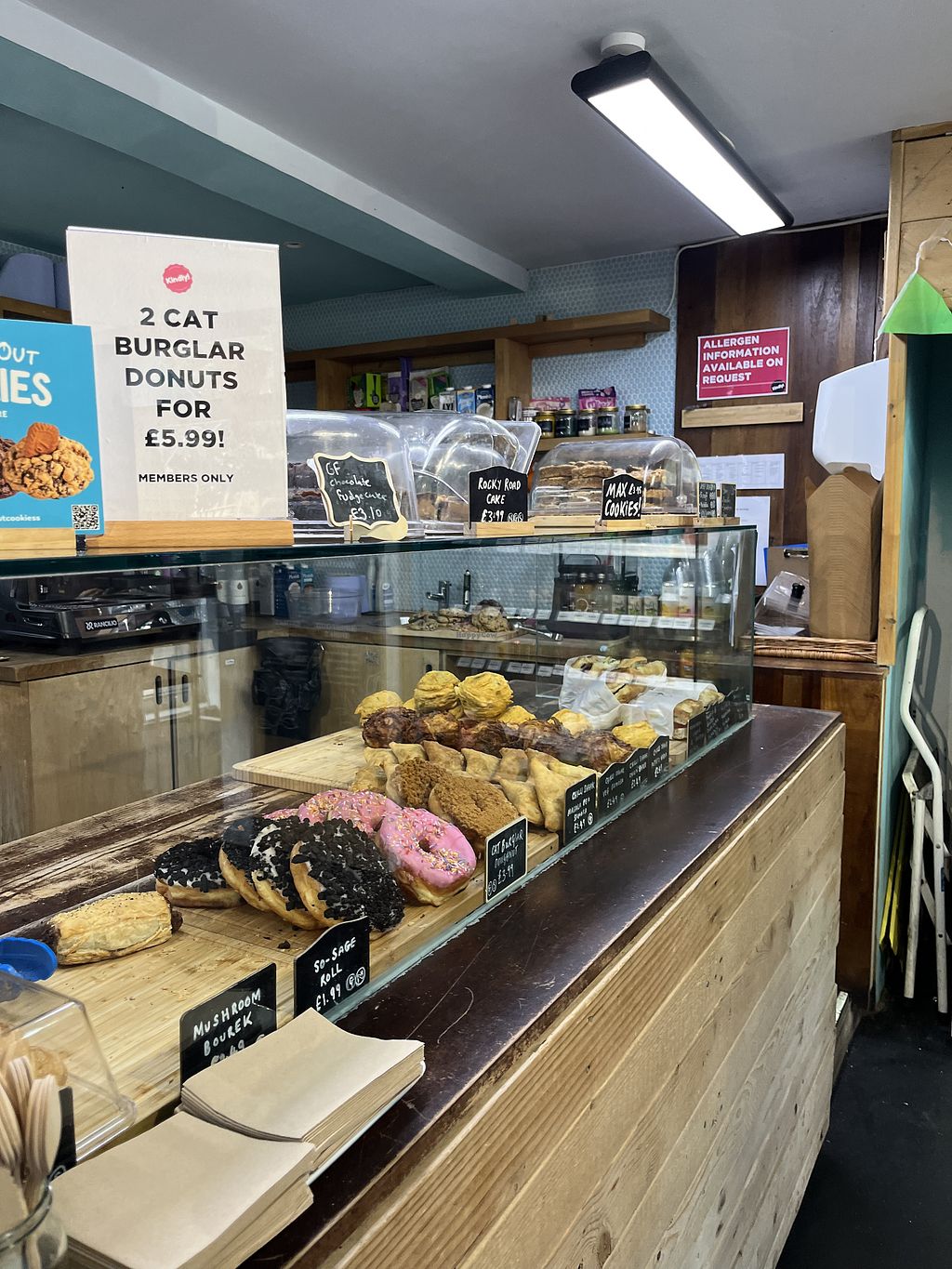 Great spot for vegan cheeses and chocolates. They have a baked goods area where they also sell cakes and doughnuts. Glad to see another vegan shop in Brighton 👏🏼