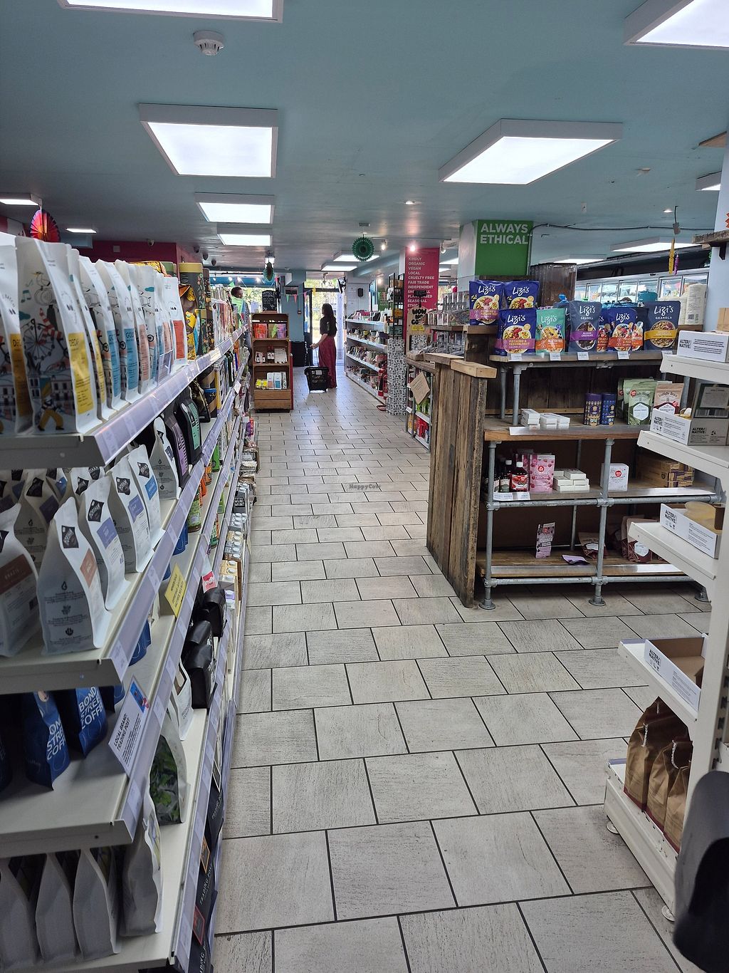 Staff are really kind, fun and excellent. Huge shop where I can refill all my household cleaning products to save waste and store cupboard essentials: nuts, seeds, rice etc. Awesome for such a big shop to be 100% vegan...makes it so much easier to shop! Fresh pastries, cakes, savoury things, all the proteins, frozen and fresh foods, wine, beer, bread and fruit and veggies. Wonderful shop.