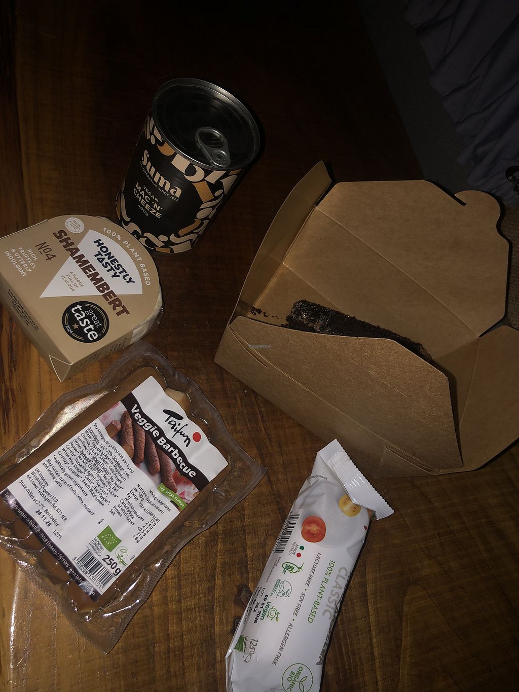 Wish we had this in Cardiff😒so much choice. I opted for the suma Mac n Cheese, shamembert, vegan mozz, tofu dogs and a chocolate cake from the counter. Haven’t tried anything other than the cake yet but it was 10/10.