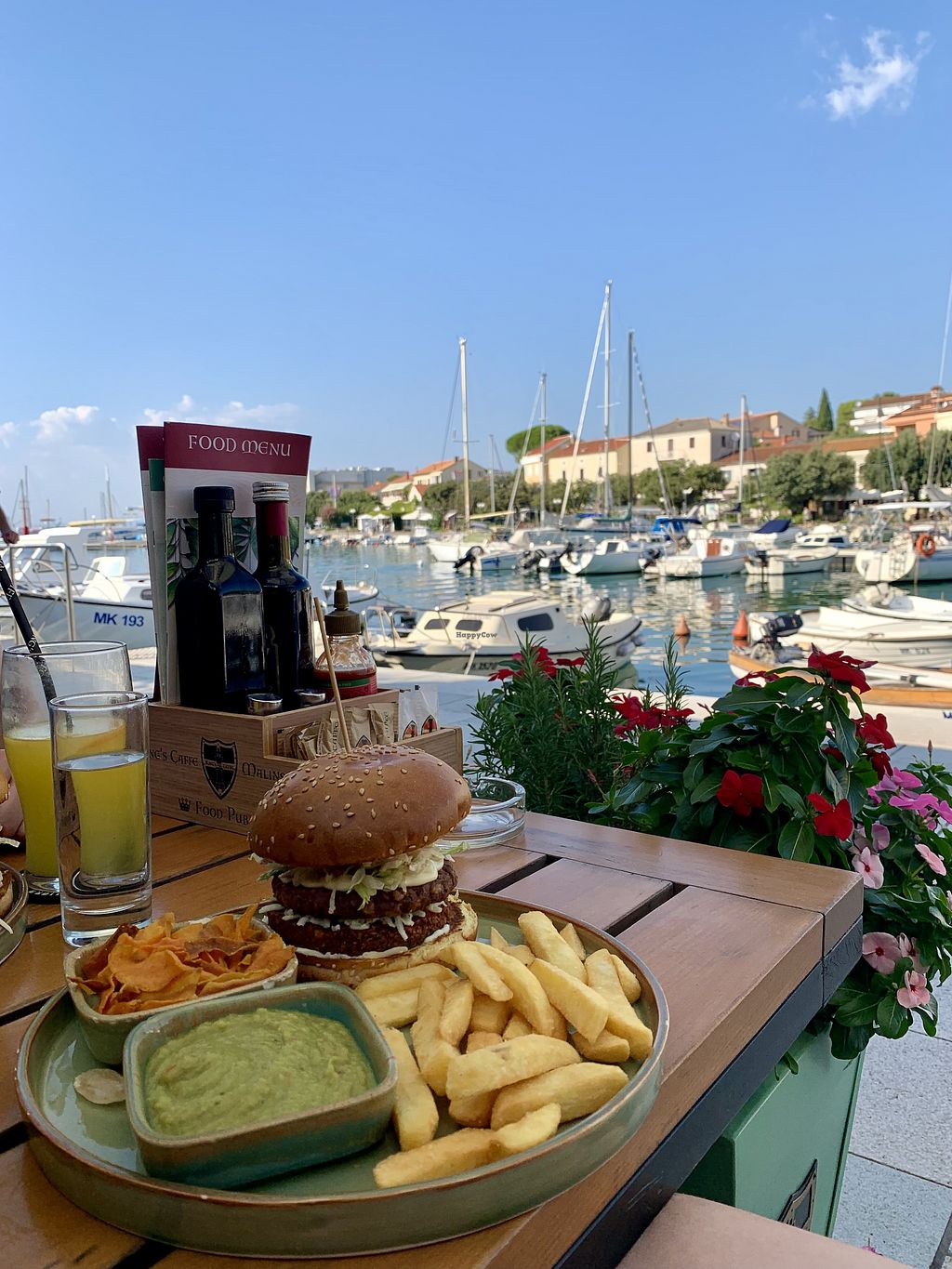 Guter Service, es gibt einen leckeren veganen Burger. (15€ mit Pommes) Man kann dort schön im Hafen sitzen und aufs Meer schauen.