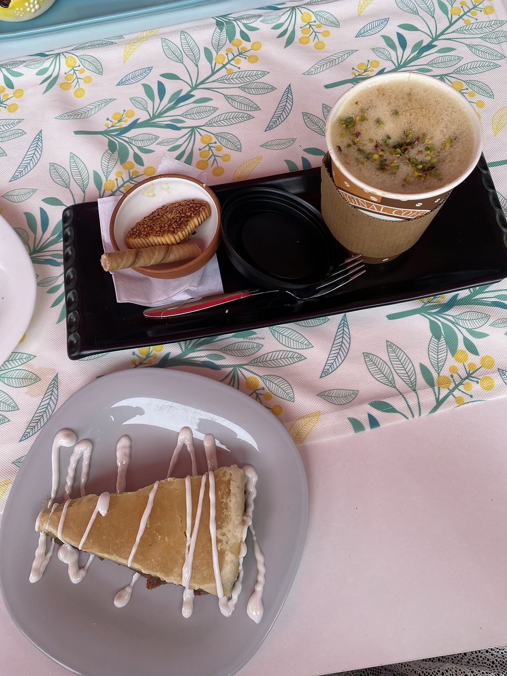 A vegan hot chocolate and an expresso. This is a lovely cafe in Kappad…