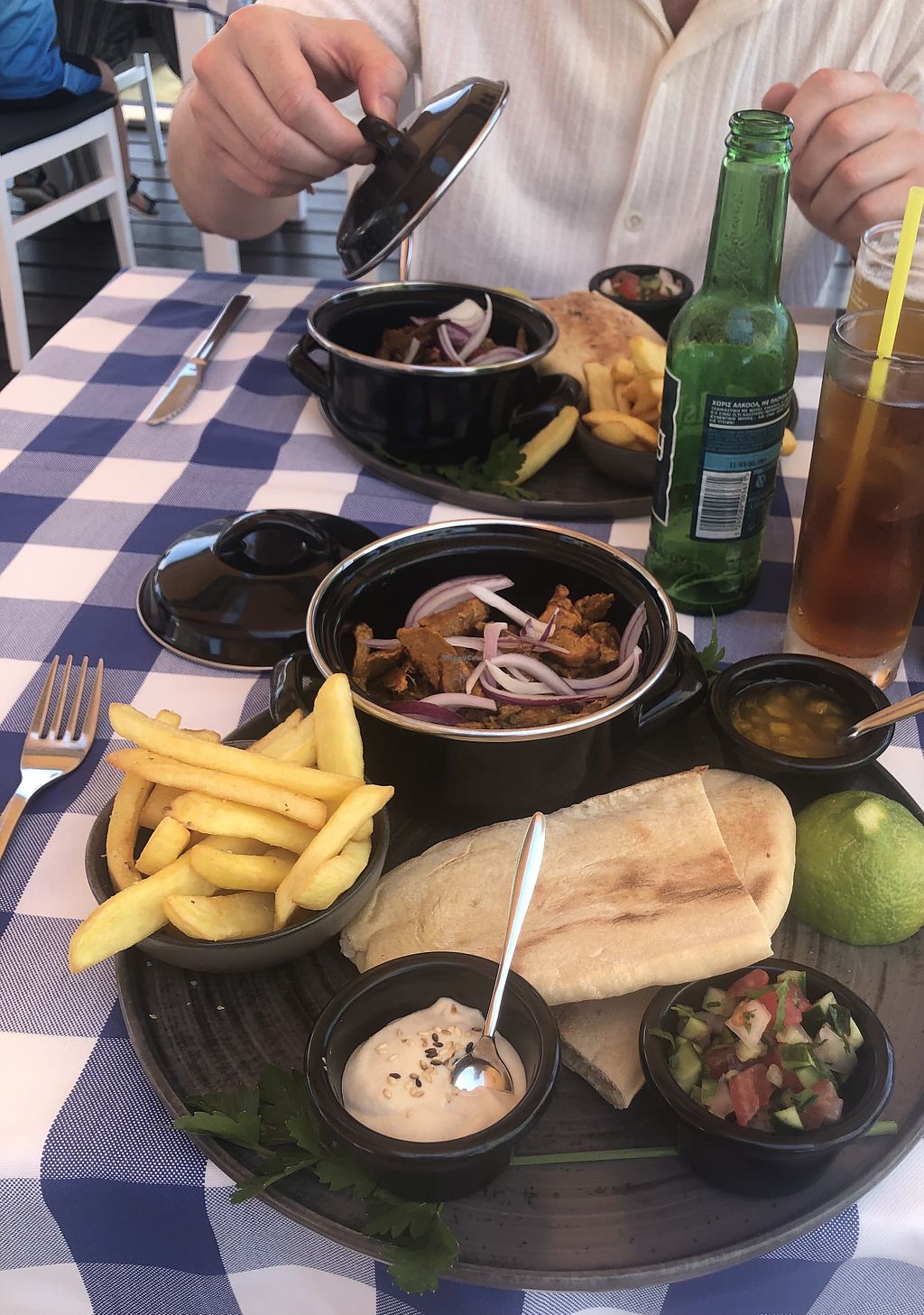 Chikn Gyros. There was also a vegan meatball pasta and moussaka option…