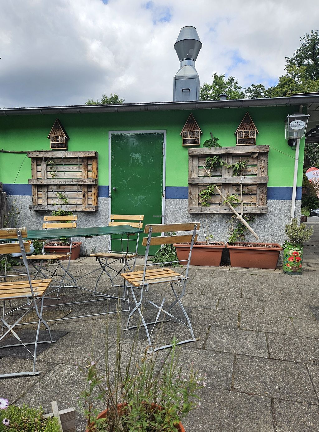 Good location for a hiking break or family trip in the Neanderthal. The kiosk is centrally located, there is a terrace at the back with some tables and a toilet. Surprisingly many vegan options: Currywurst, fries, mayo, salads (potato/kale and couscous/mint) and three kinds of popsicles. There's also a tofu/curry/cucumber sandwich, although I'm not sure if it's vegan or vegetarian as it does not explicitly say so. All drinks - including beer - are non-alcoholic. I tried the curry sausage with fries and found it very tasty! At busy times, you only have to wait a little longer in the queue.