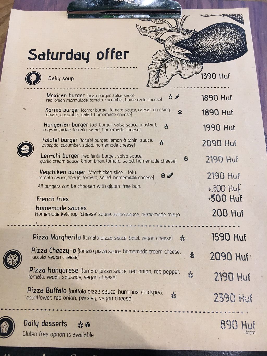 Hamburgers, available on Saturday