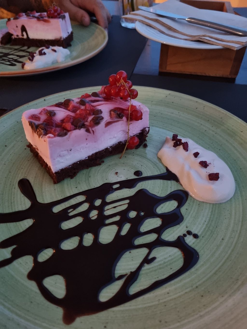 You have to walk 30 minutes to reach Kisfaludy ház from the port, but absolutely worth it. The view was fascinating, and the staff there was really kind to us. I ordered wine coctail, my friends drank wine. I ate rhubarb beetroot soup with lemon sorbet as lunch then mint pea stew with vegan meatballs. I cannot tell you how delicious it was.