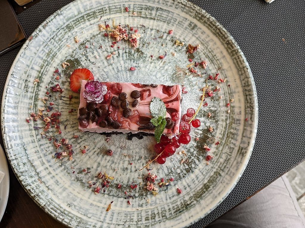 The view is worth the walk up to the restaurant. They only have one vegan main option which was ok. The strawberry cake was delicious.