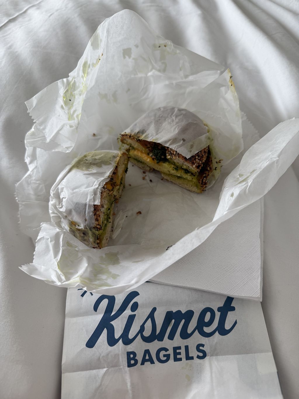 The veg bagel sandwich with vegan garlic and herb cream cheese!