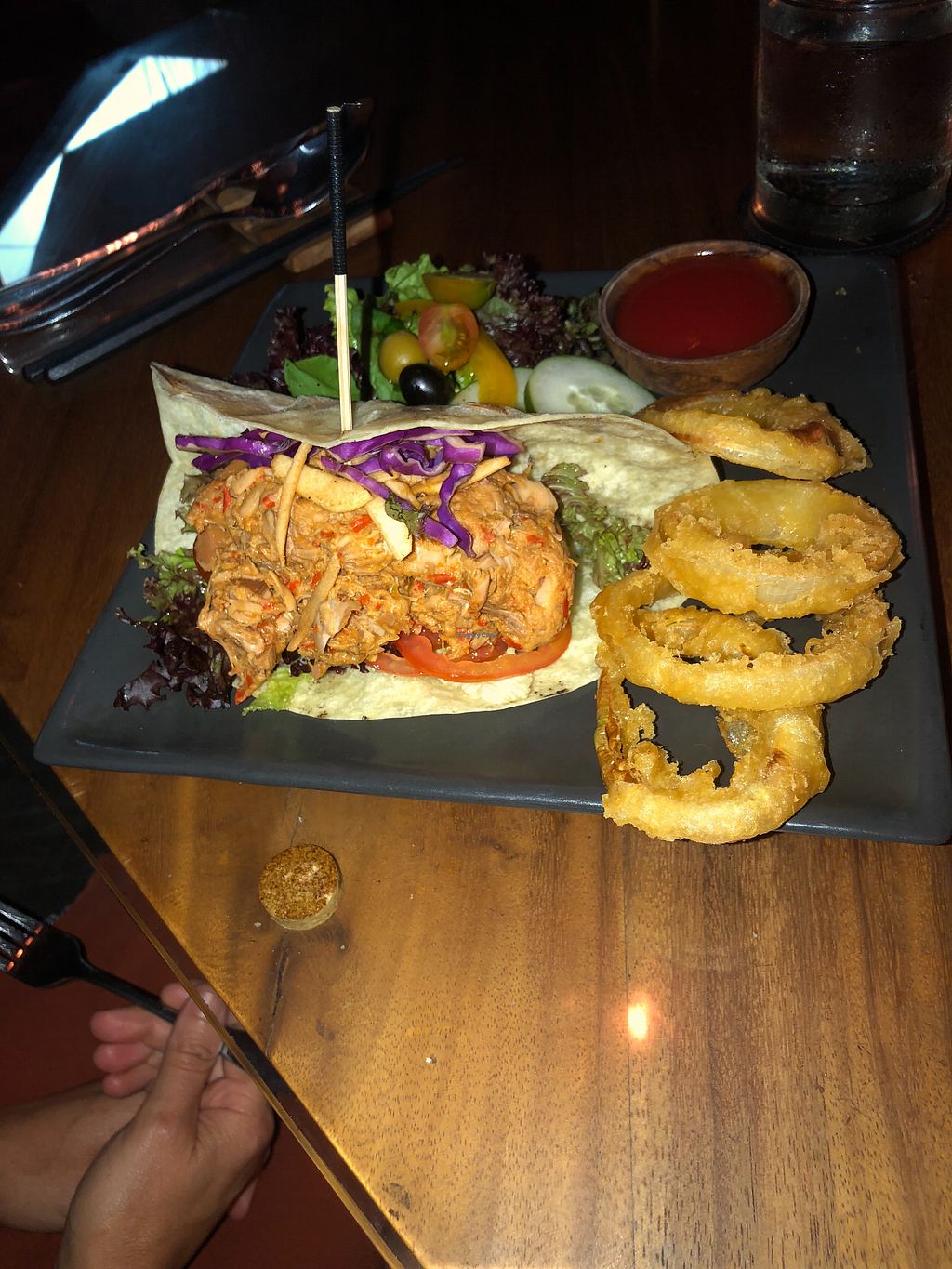 The food we had was really good. I had the 666 southwest bowl with the vegan satay skewers (swap honey dressing for balsamic) and my boyfriend had the chick’n wrap. Both were really tasty. Cocktails were good too, can’t remember the name of mine but it has chilli in and was a bit spicy which I love. Vegan options weren’t marked which always frustrates me a bit but the staff were good at helping us choose. Would be nice to have more vegan options especially when it comes to dessert and the dessert cocktails. Was pretty expensive for ubud, but still worth a visit.